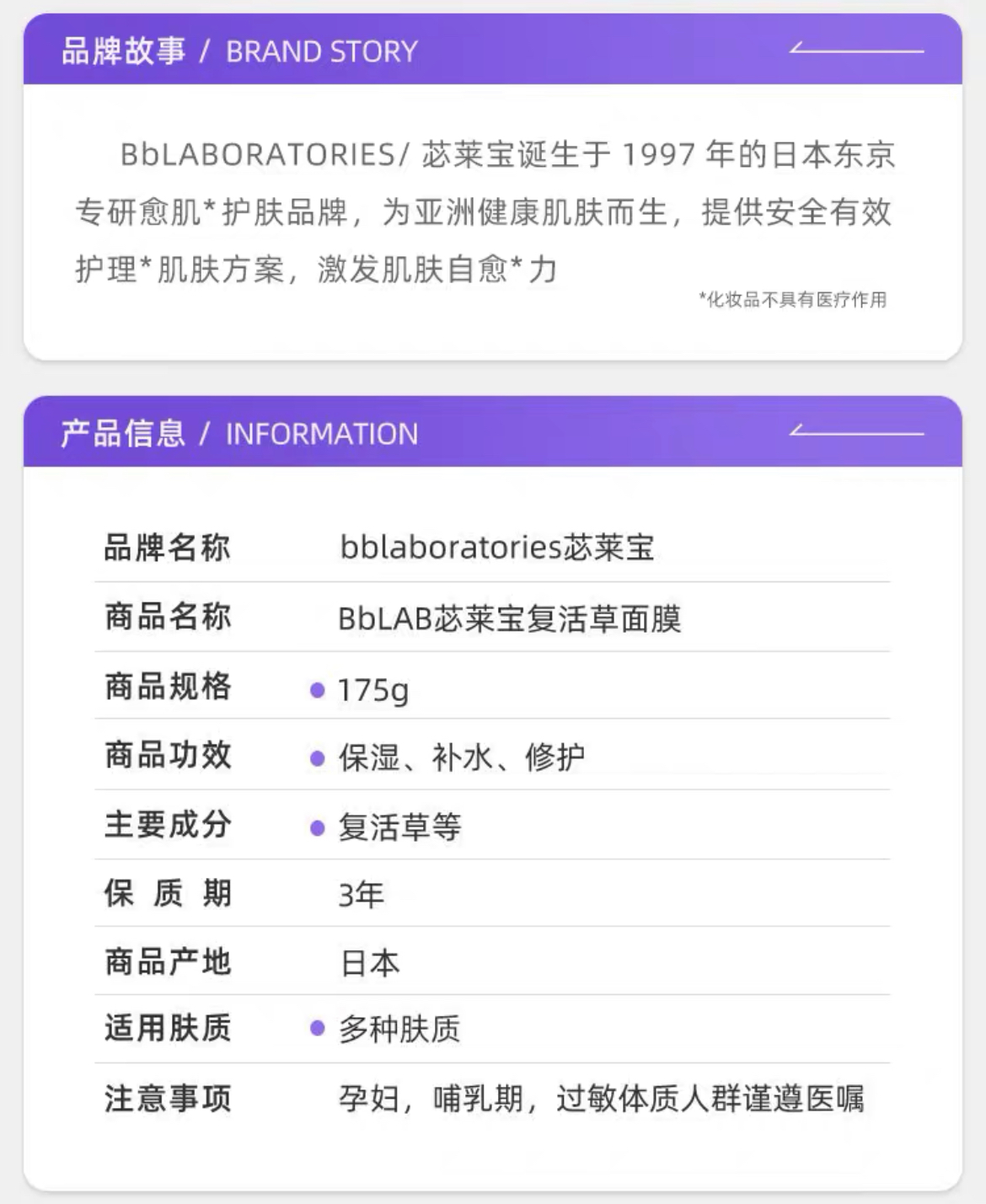 复活草·Bb laboratories·苾莱宝新版复活草面膜 175g高倍补水