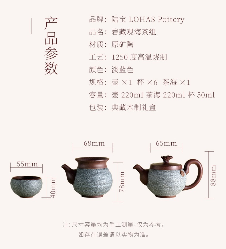 配 置:壶×1,杯×6 ,茶海×1,原矿陶