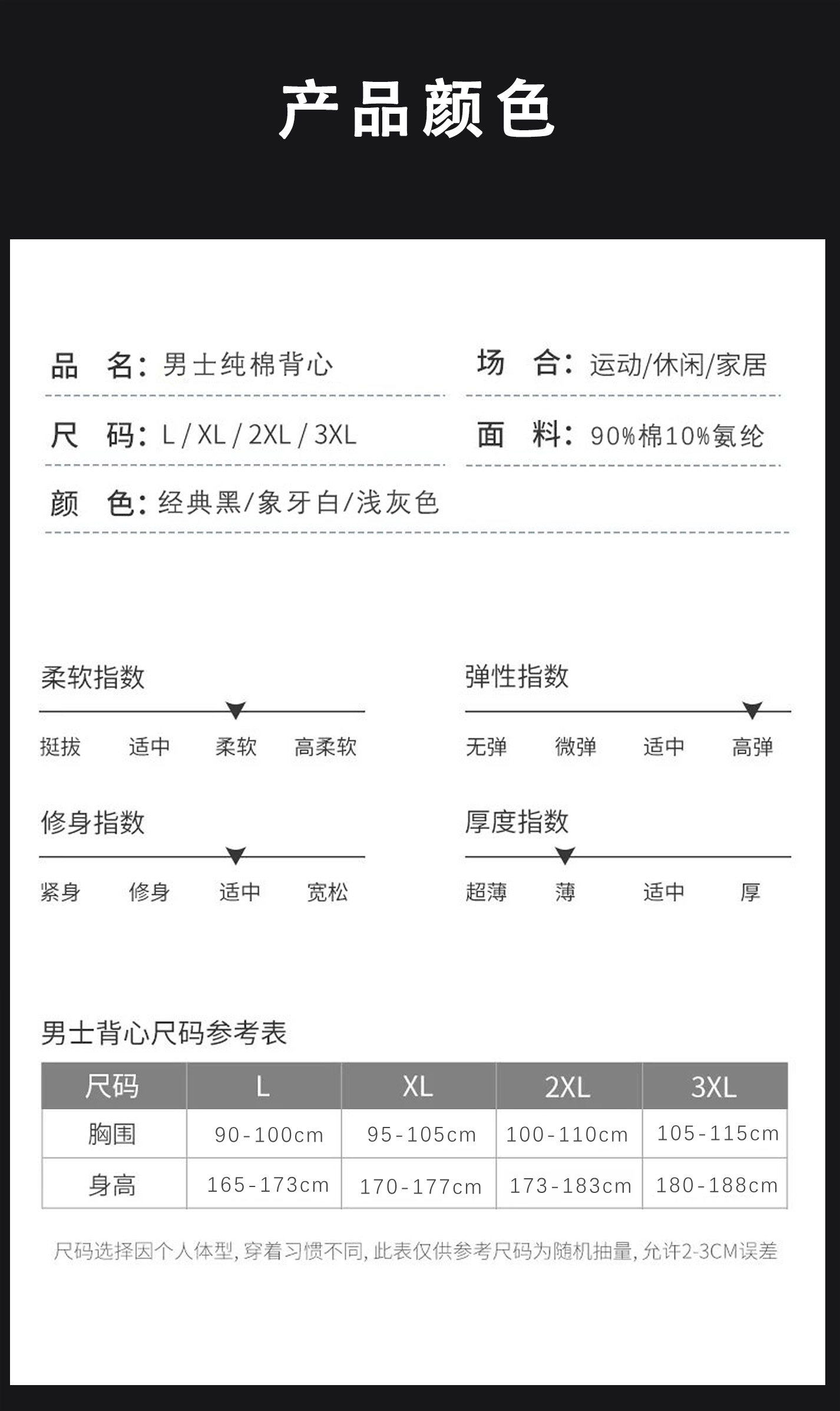 新款男士纯棉打底背心 吸湿排汗 透气快干