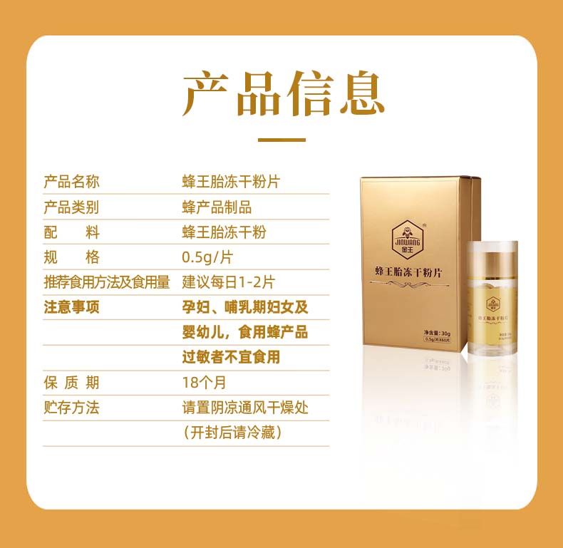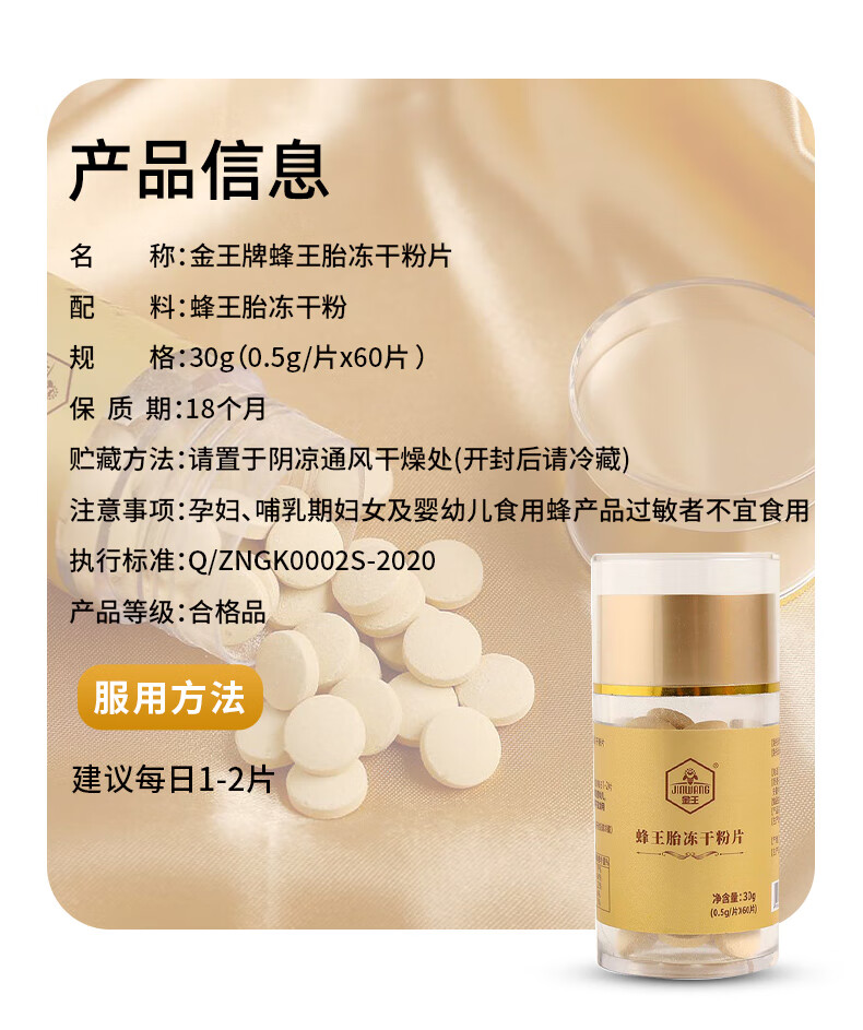 【自营】金王蜂王胎冻干粉片 30克(0.5克*60片)