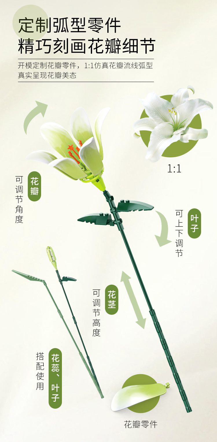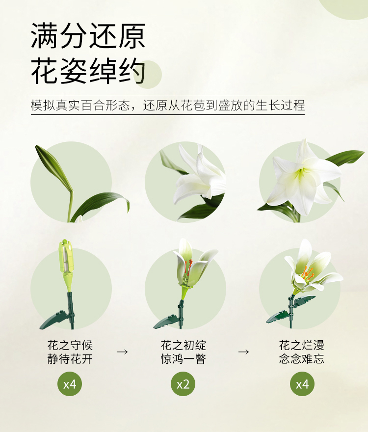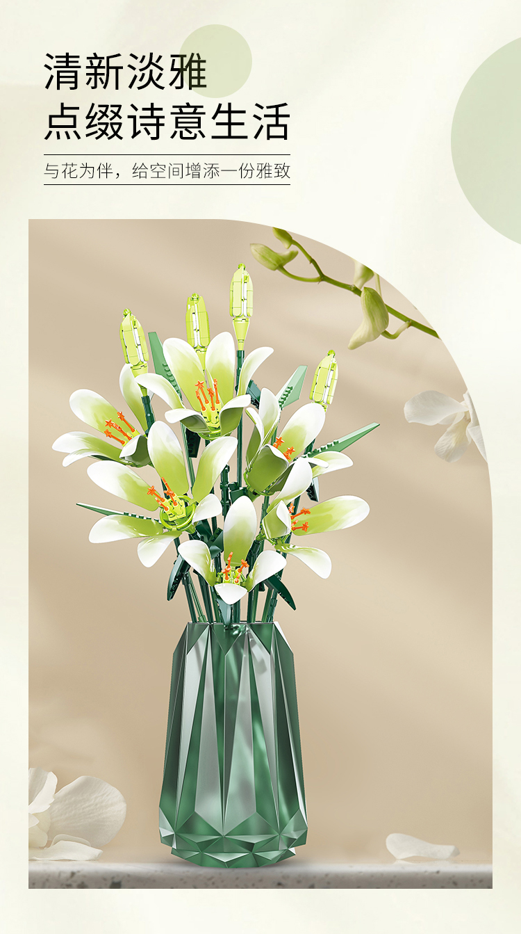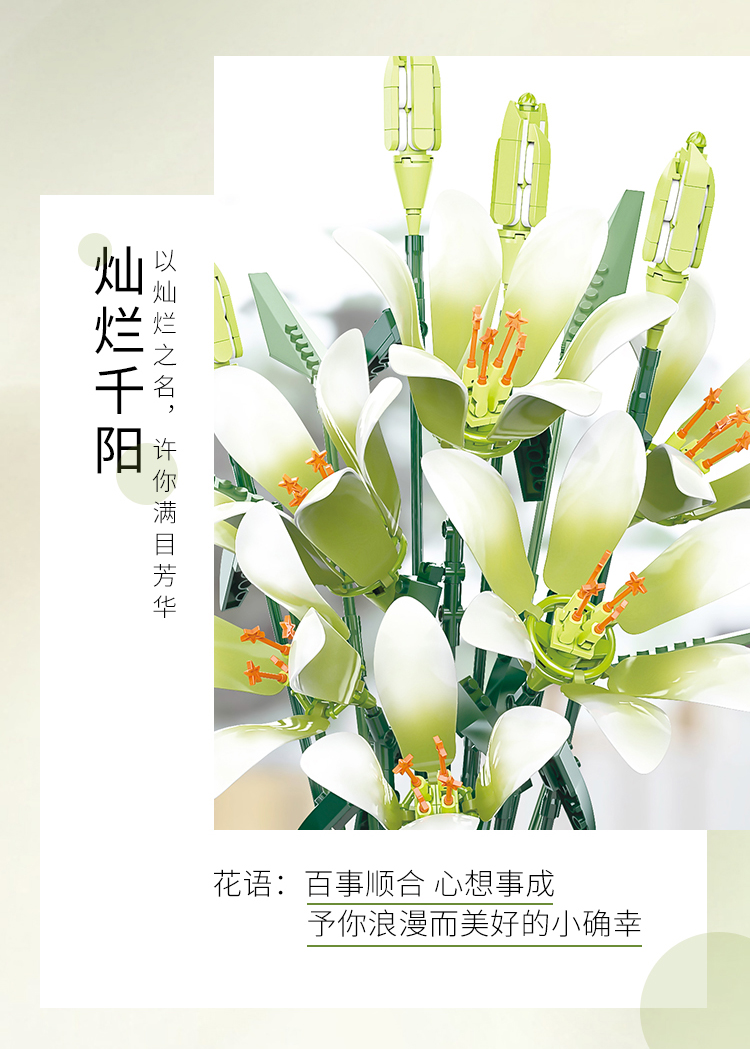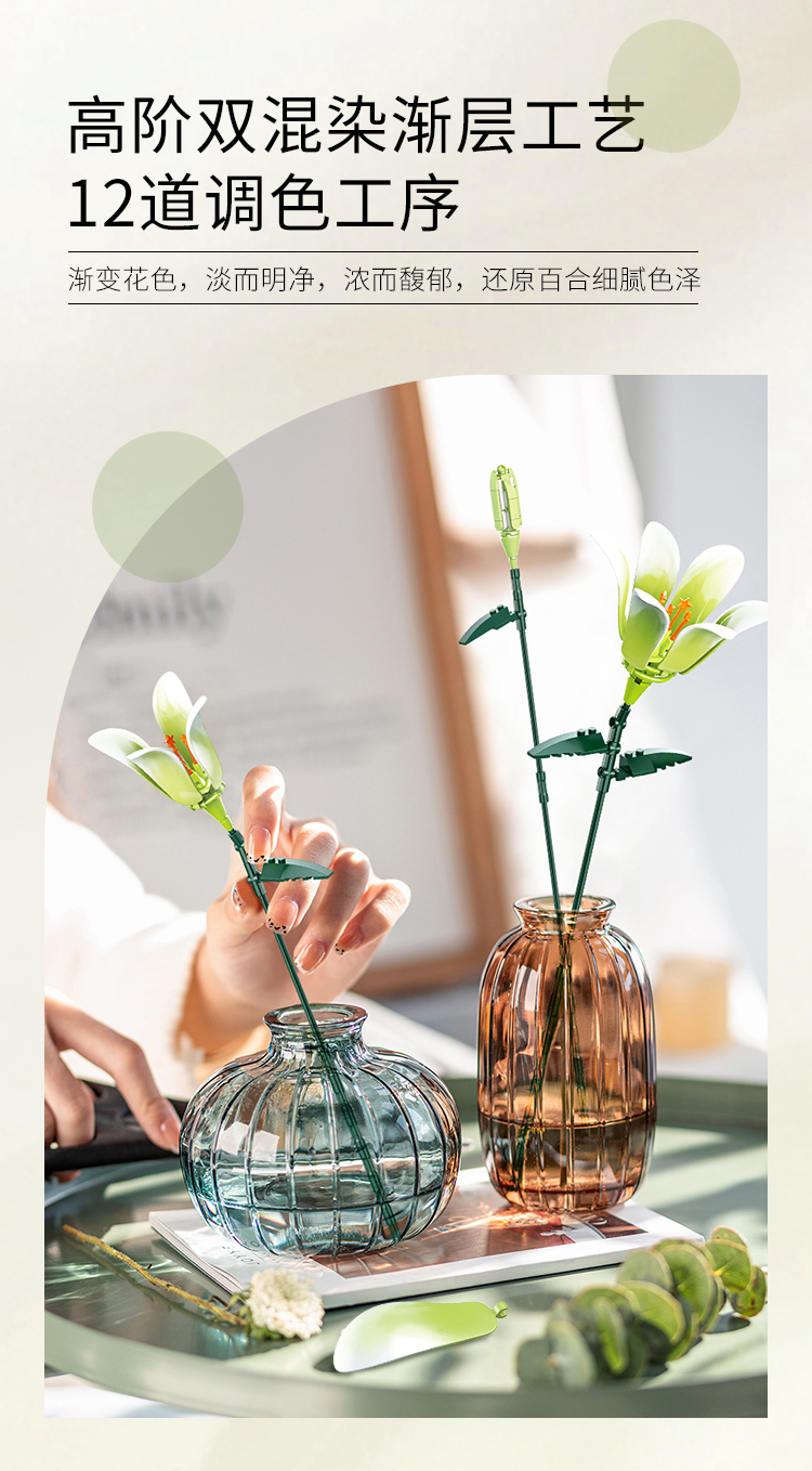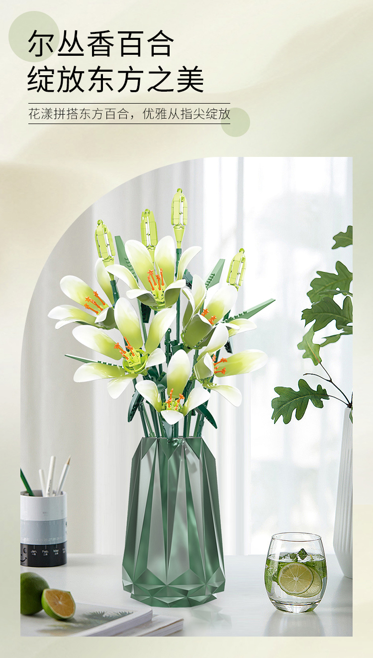 灿烂千阳百合积木花束创意永生花桌面插花装饰摆件模型情人节礼物