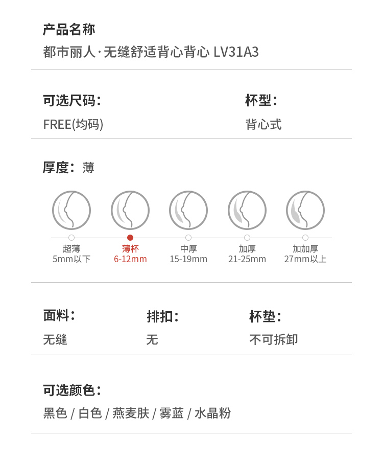 都市丽人短抹胸无尺码无缝面料背心无排扣无钢圈LV31A3