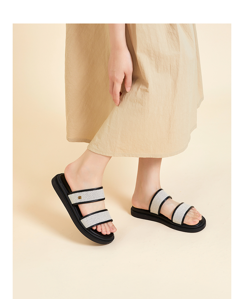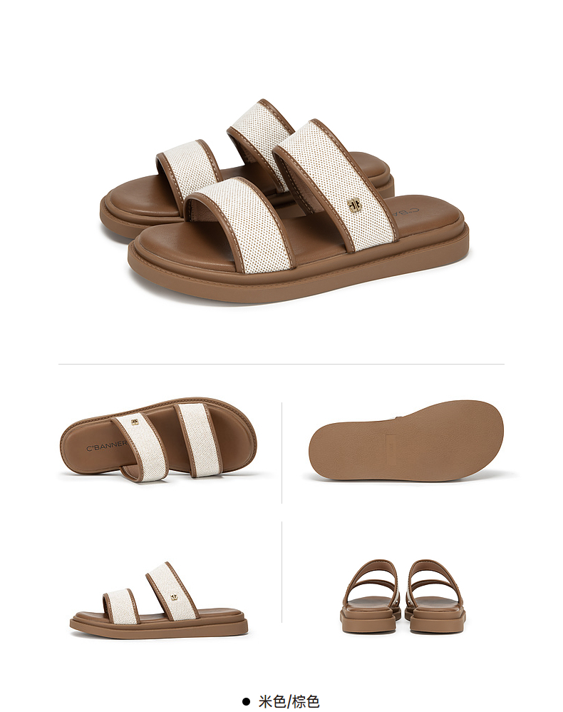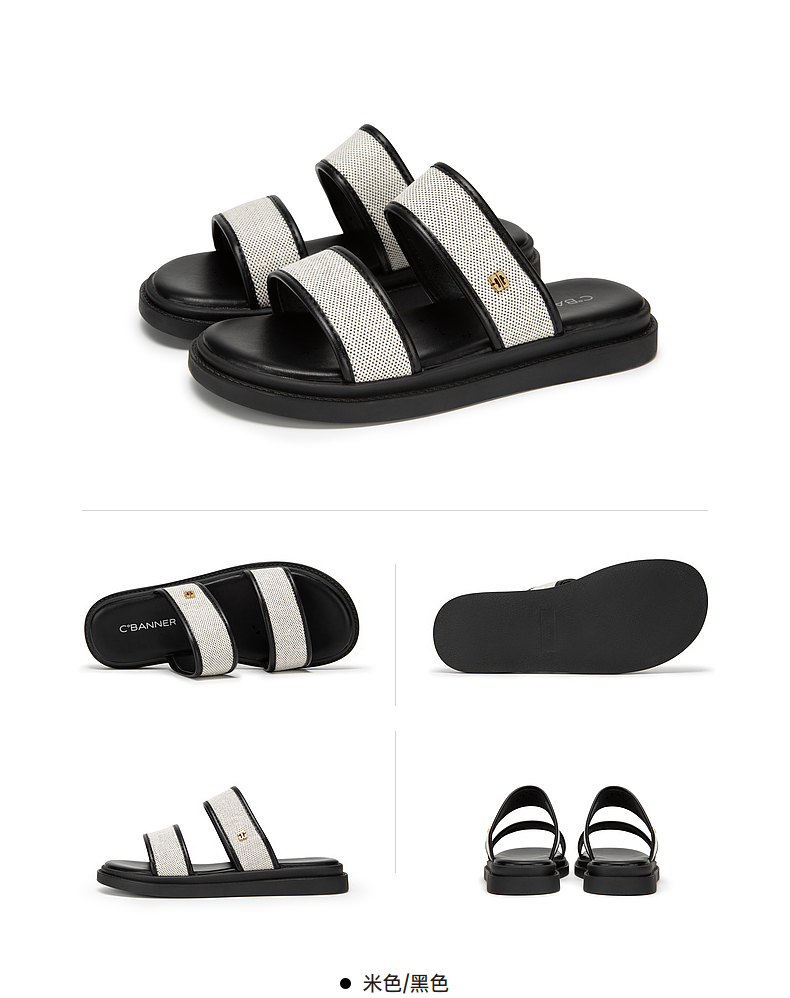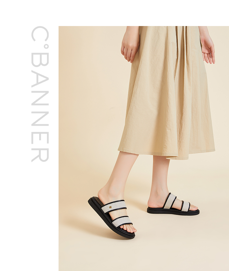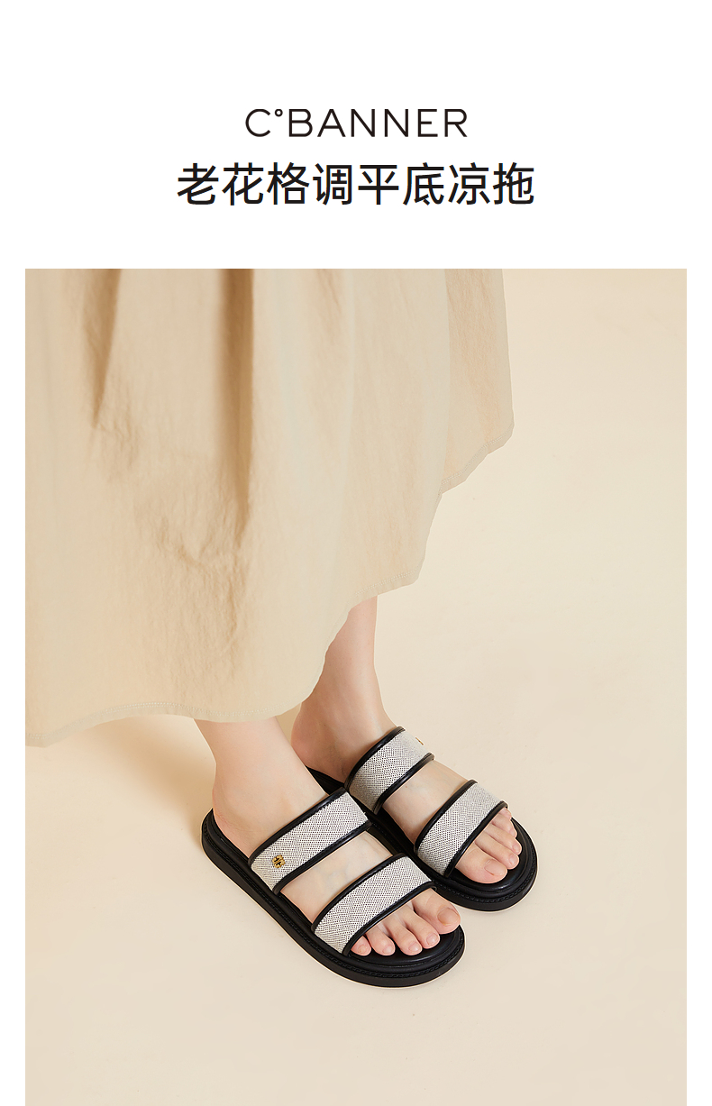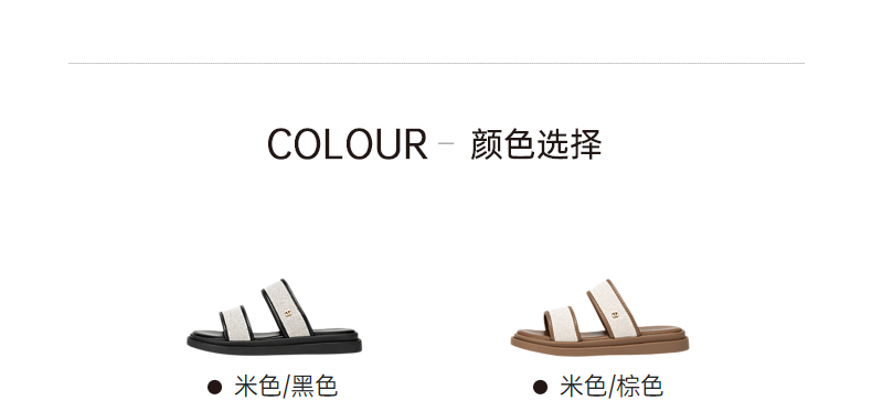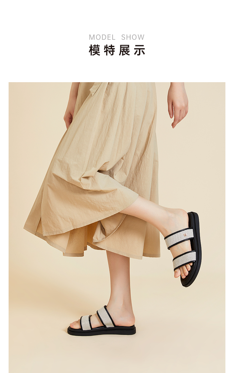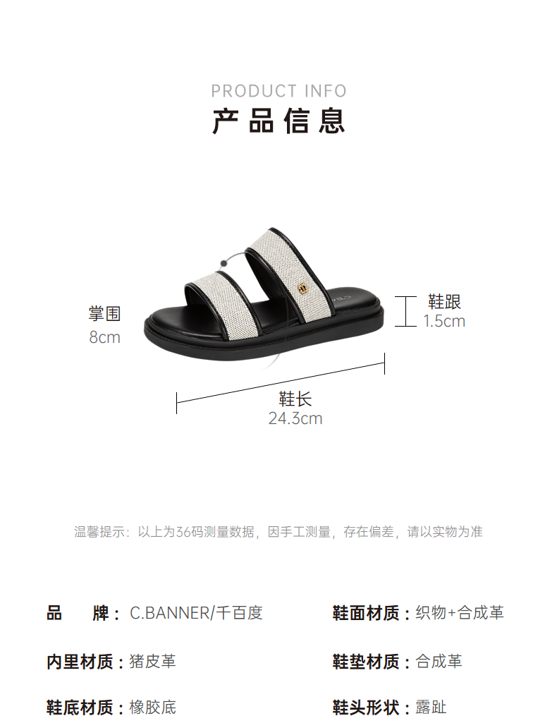 千百度羊皮一字拖女夏季中跟凉拖鞋真皮拖鞋A24355065