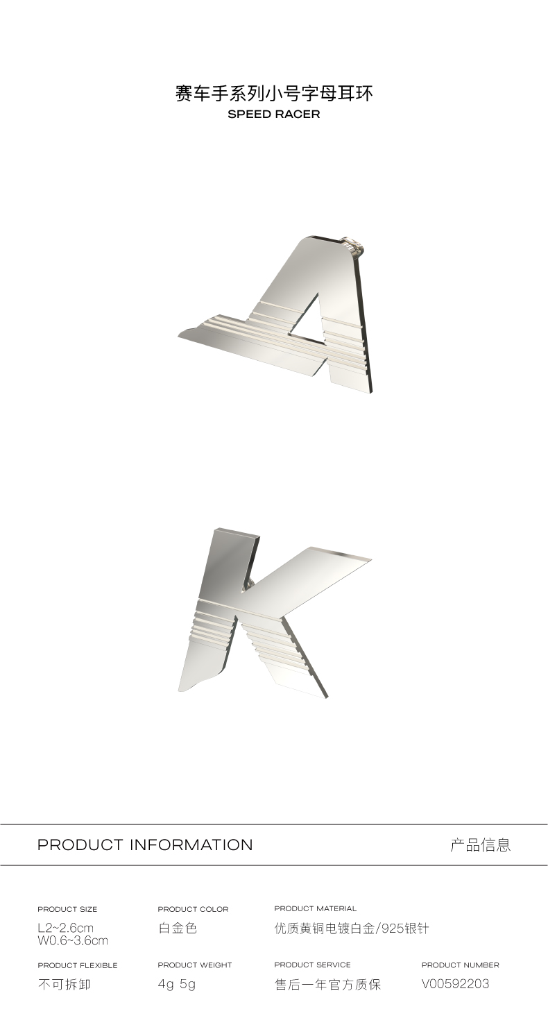 KVK小众设计高级感小号字母耳环2021年新款简约无耳洞耳夹耳针款