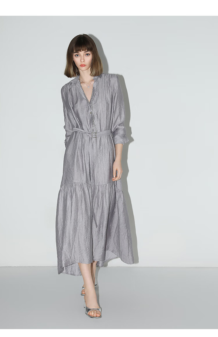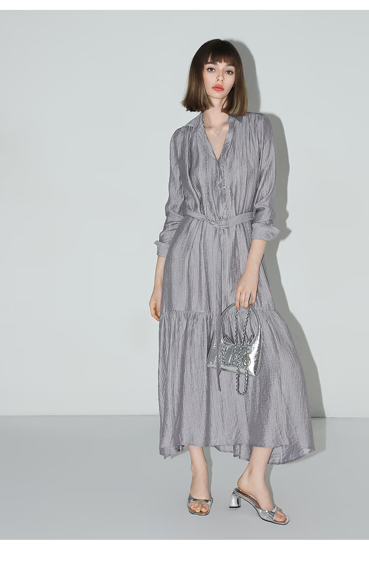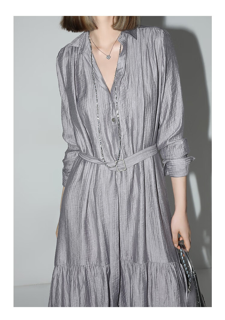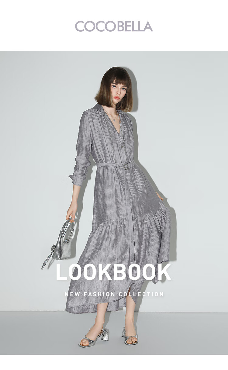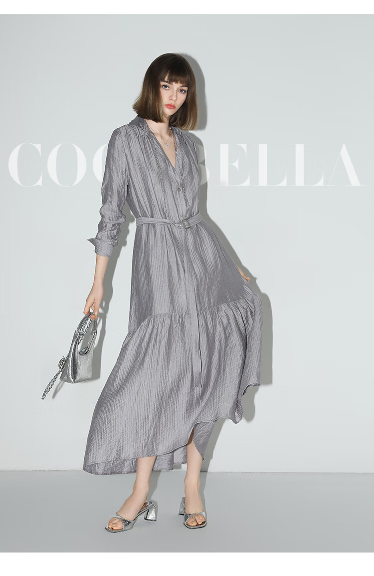 COCOBELLA肌理褶皱莱赛尔连衣裙轻熟女夏气质长袖衬衫裙FR915