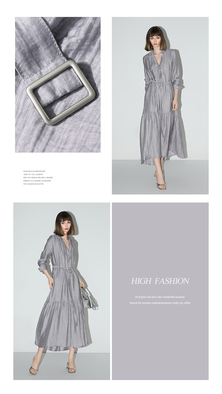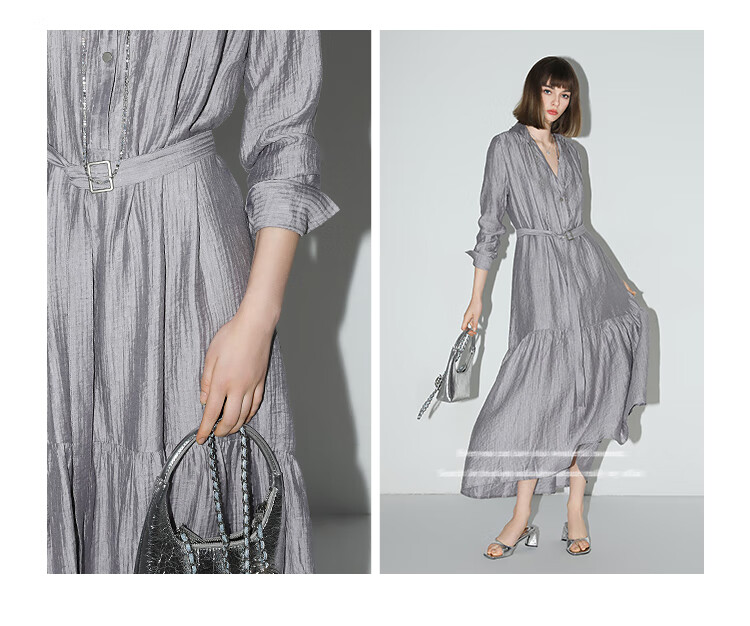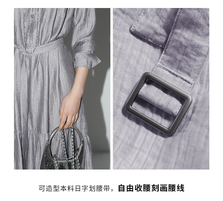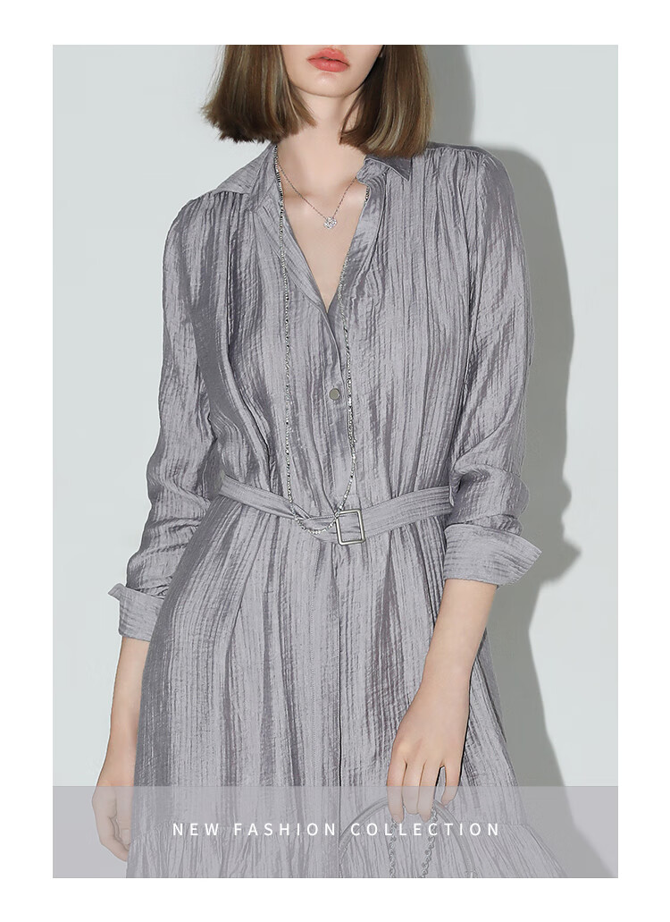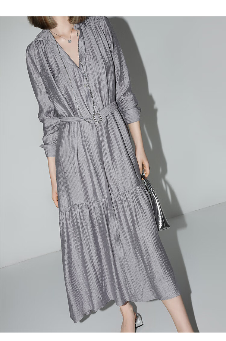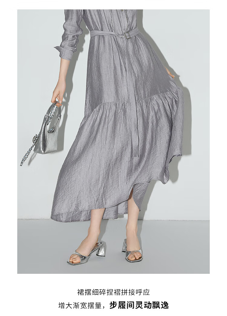 COCOBELLA肌理褶皱莱赛尔连衣裙轻熟女夏气质长袖衬衫裙FR915