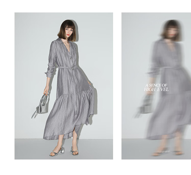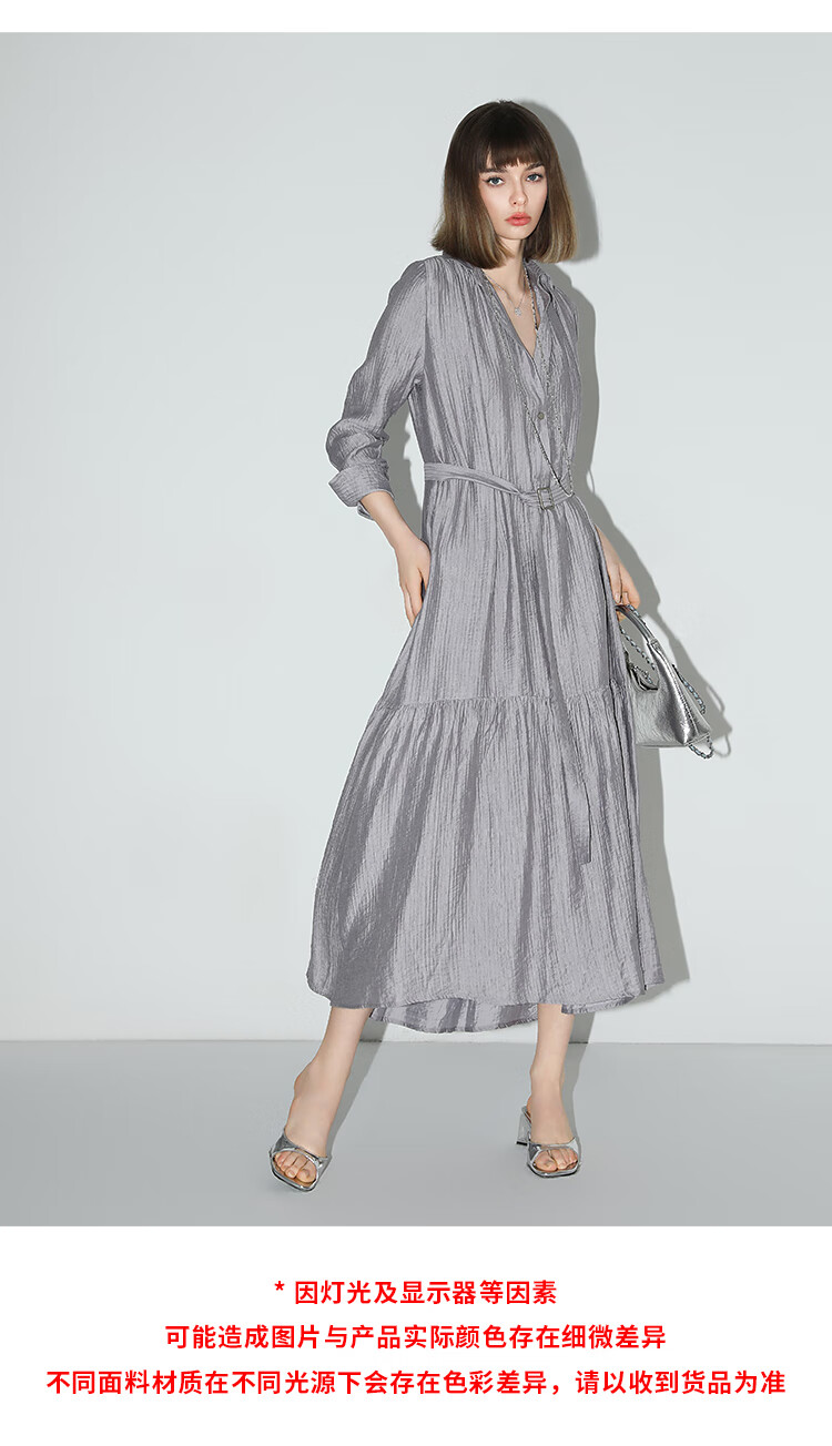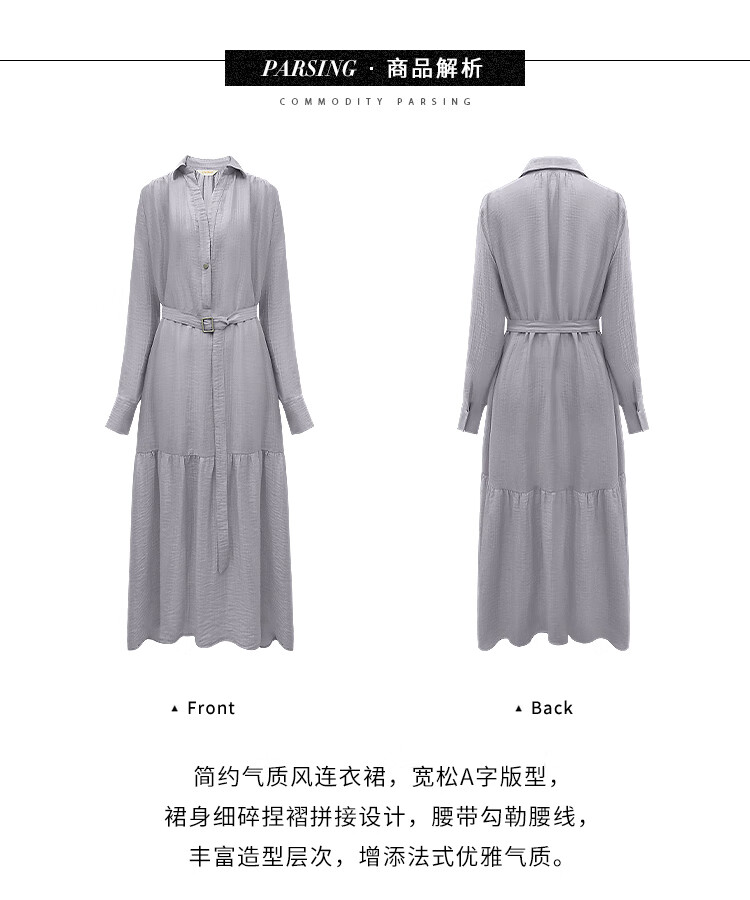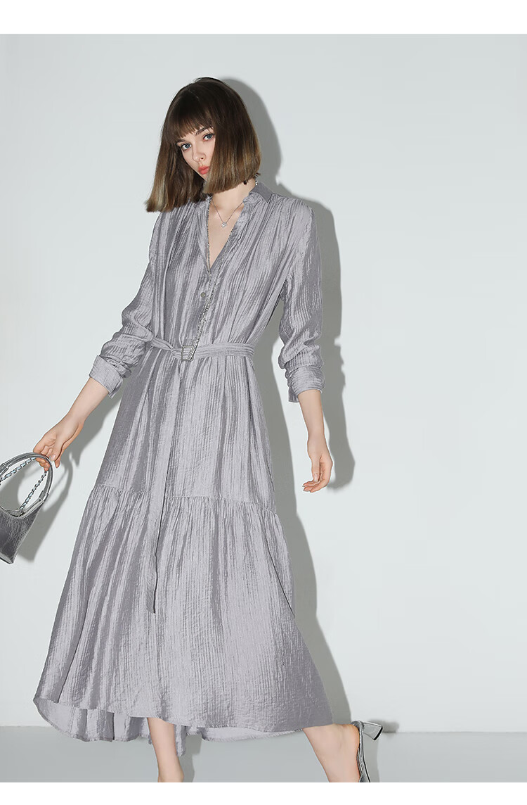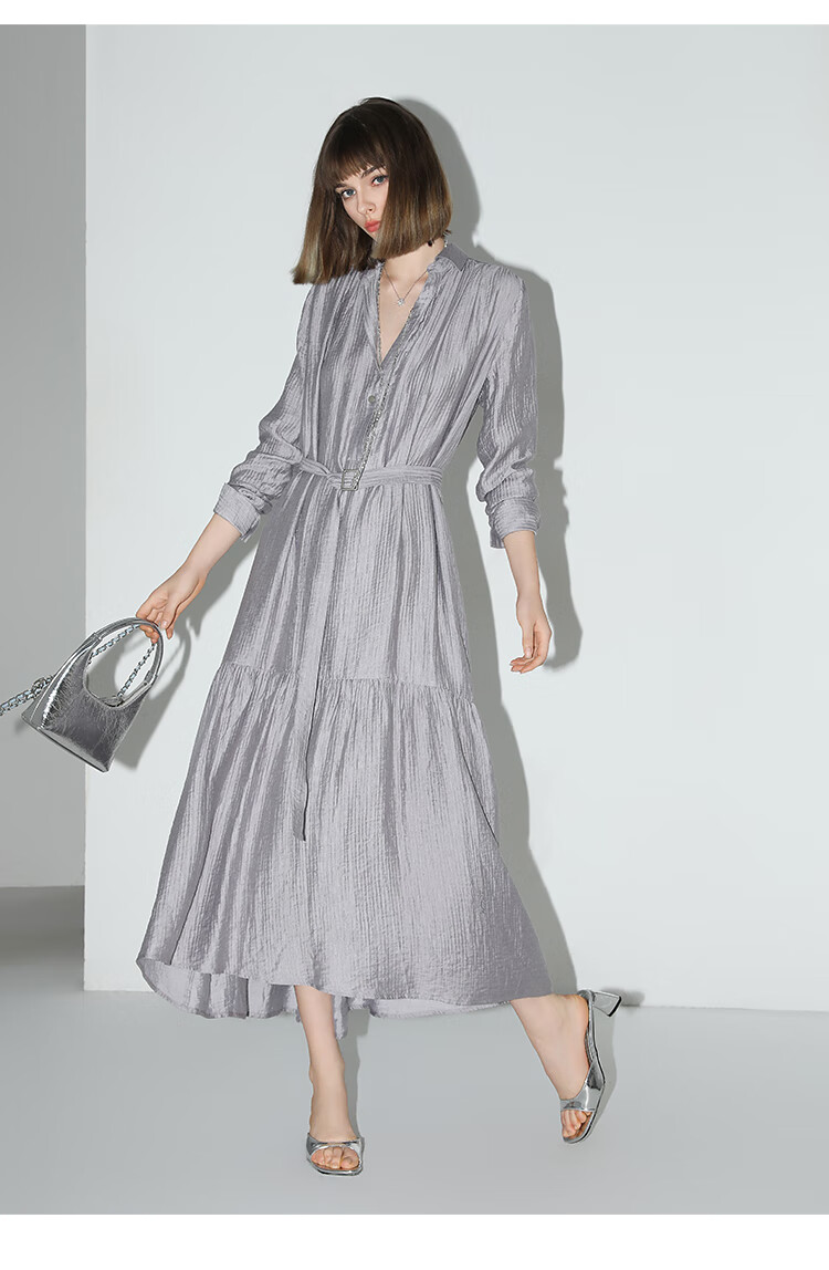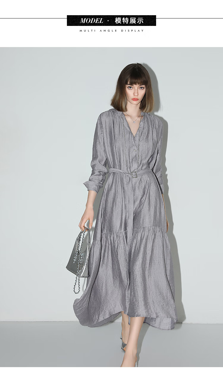 COCOBELLA肌理褶皱莱赛尔连衣裙轻熟女夏气质长袖衬衫裙FR915