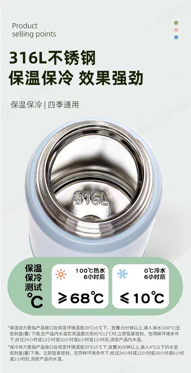 膳魔师儿童保温杯学生防漏水杯男女商务直饮杯便携不锈钢316L水杯