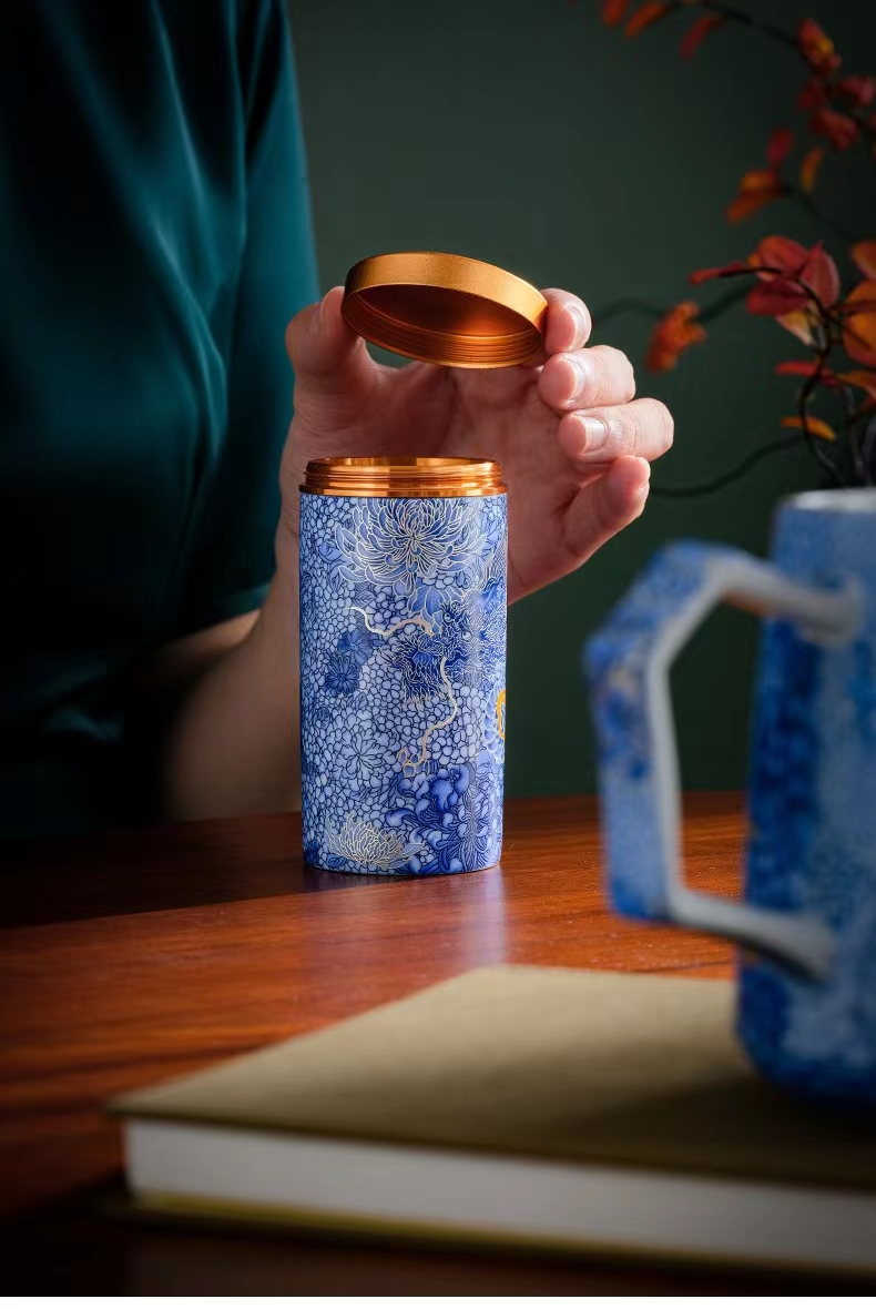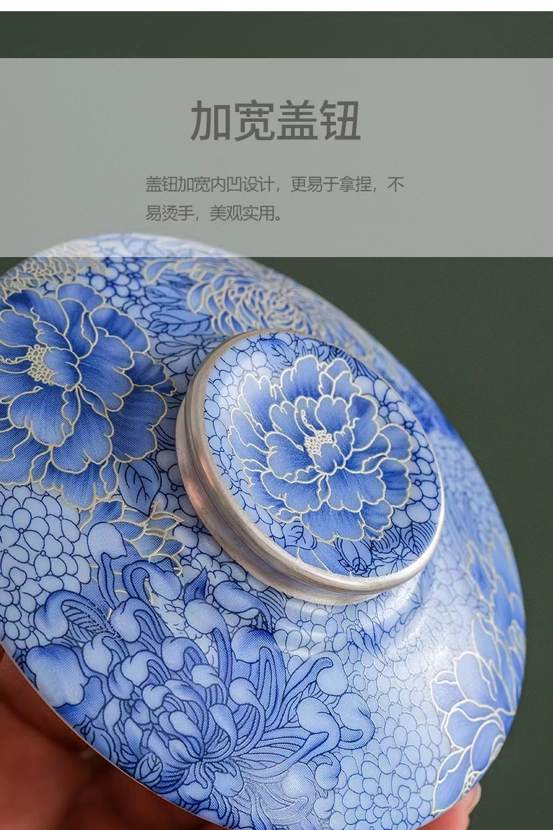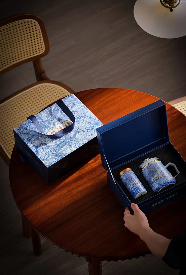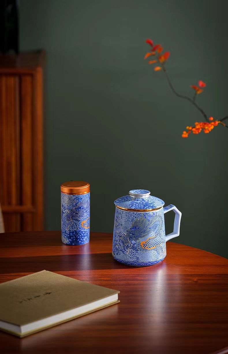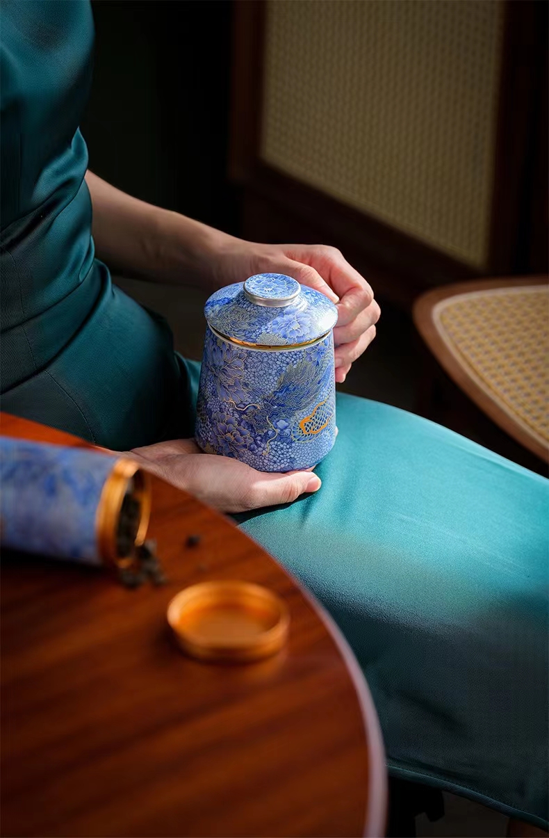腾龙盛世999纯银掐丝珐琅青花杯罐套装