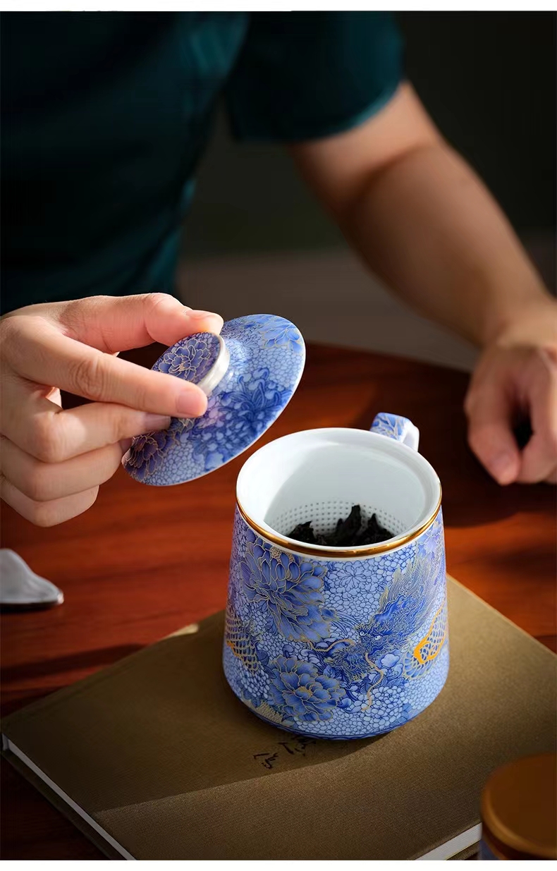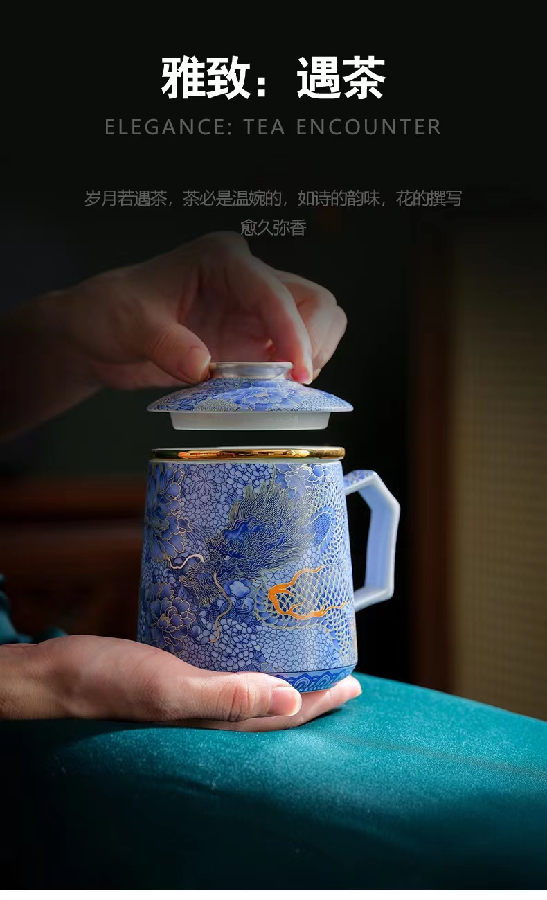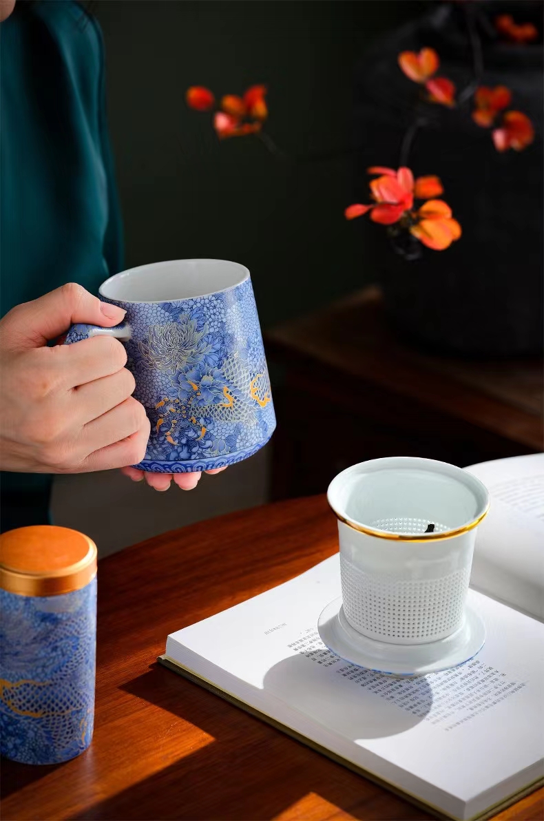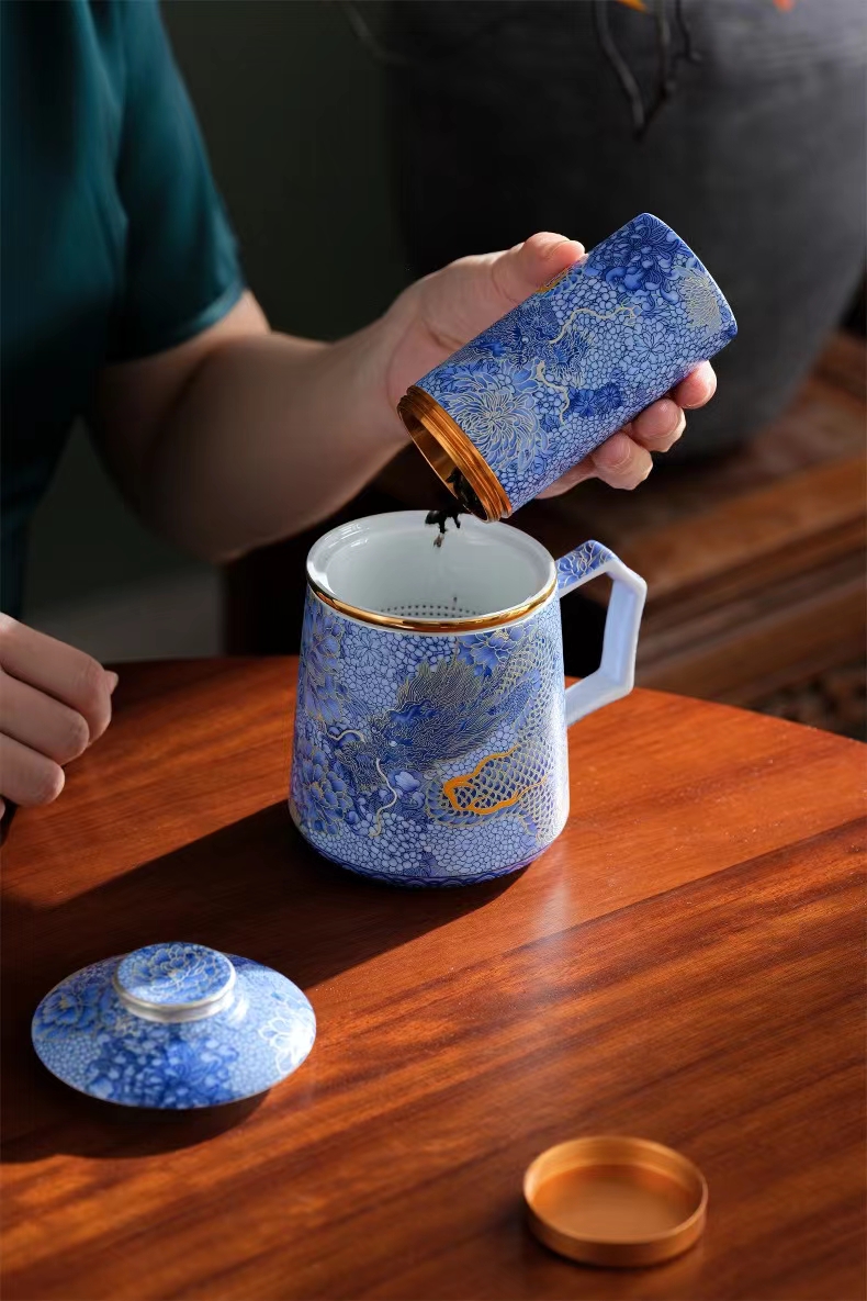 腾龙盛世999纯银掐丝珐琅青花杯罐套装