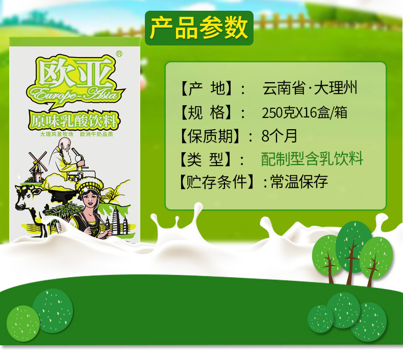 「日期新鲜」欧亚牛奶原味乳酸饮料250g*16盒/箱早餐乳制品