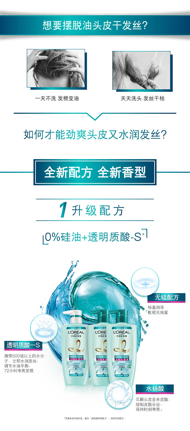 【自营】 欧莱雅 透明质酸水润 洗护系列 多规格