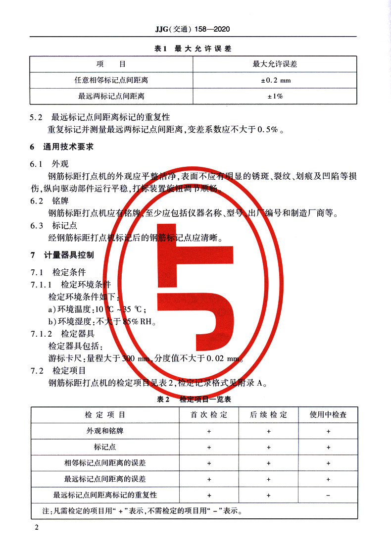 | 钢筋标距打点机JJG(交通) 158—2020 | ||