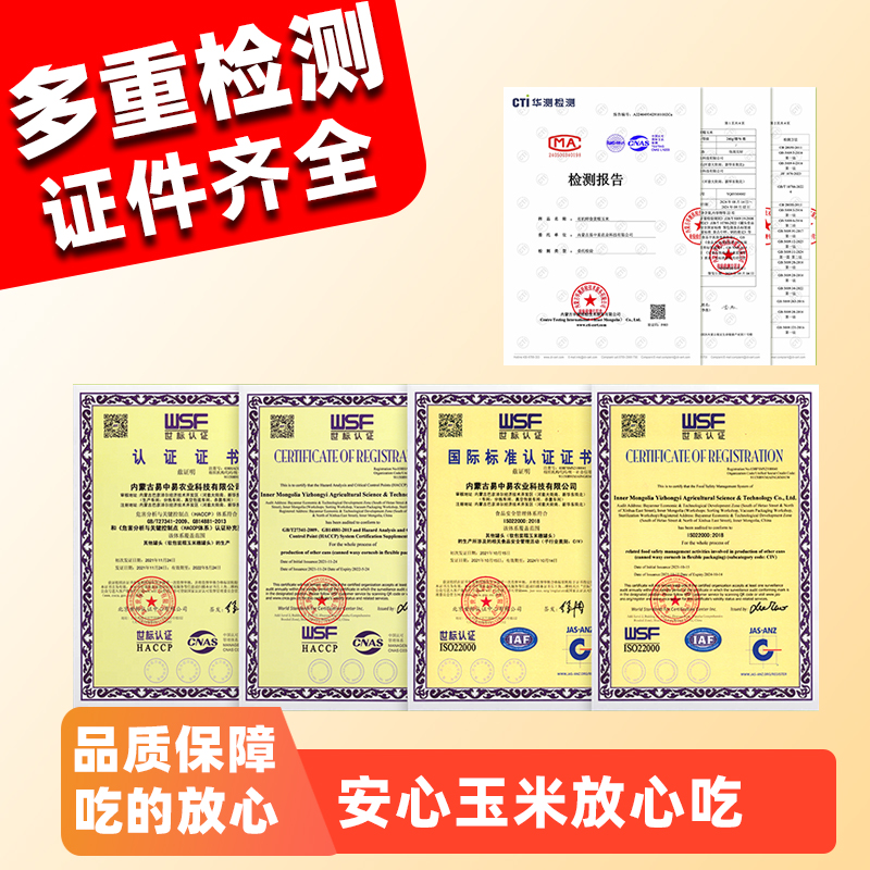这穗玉米是真正的有机好粮,不仅通过了严格的有机认证,还经过 803 项农残检测,结果均为无残留,且是非转基因品种,让大人小孩都能吃得放心~