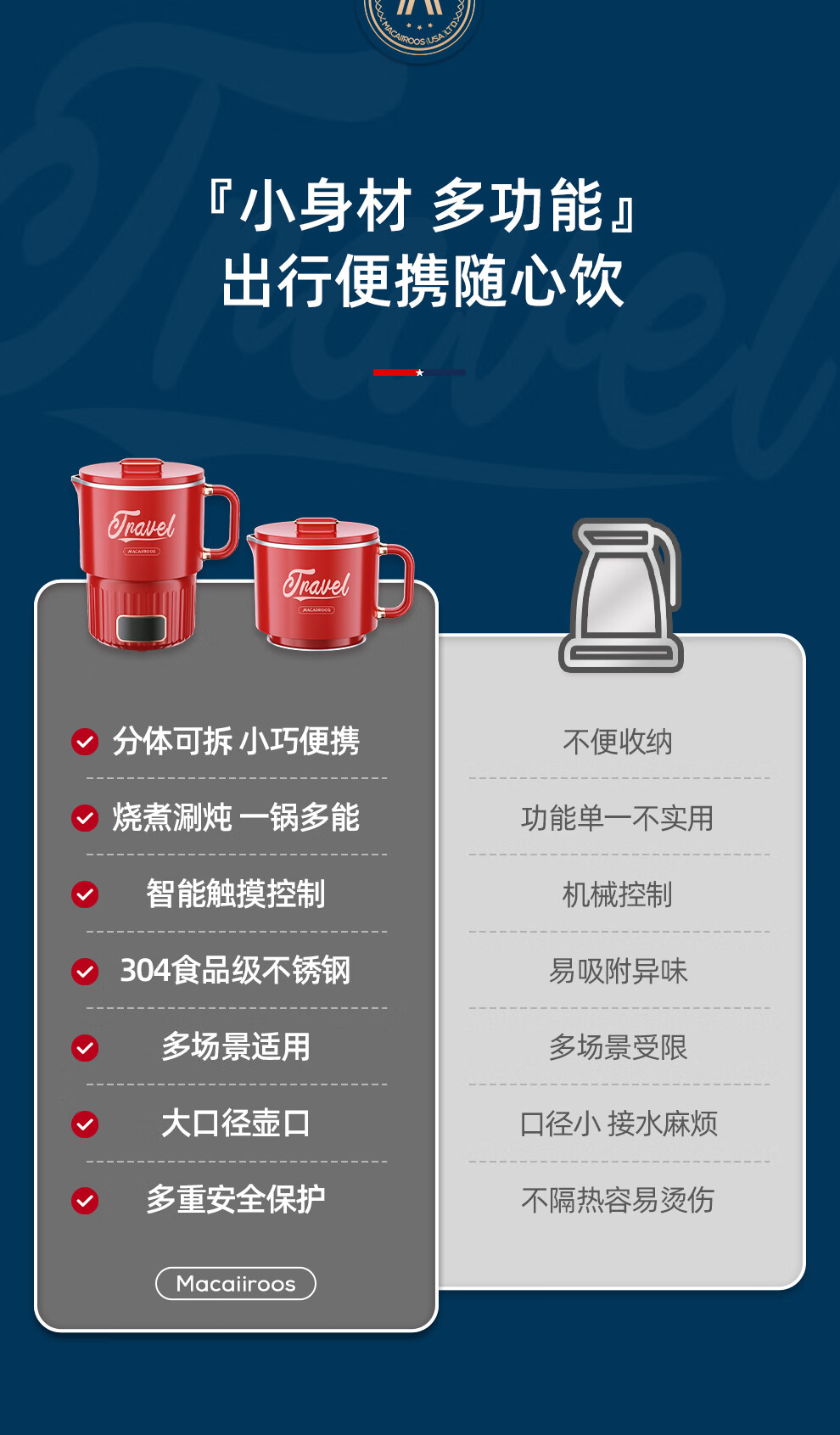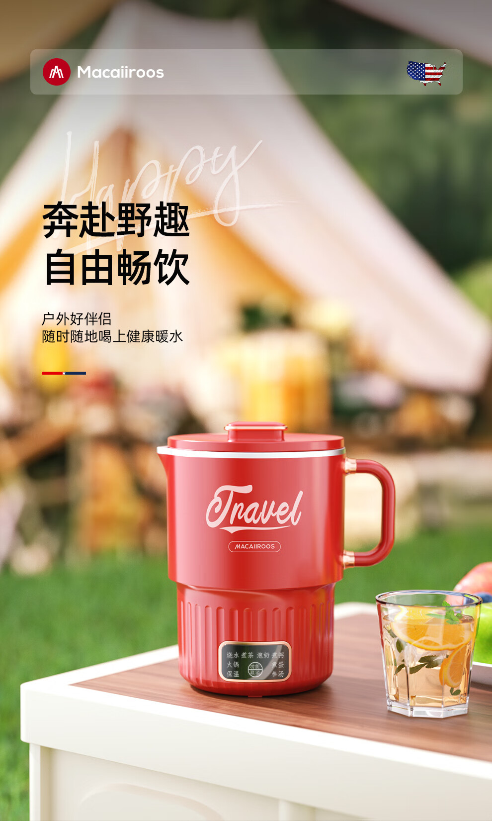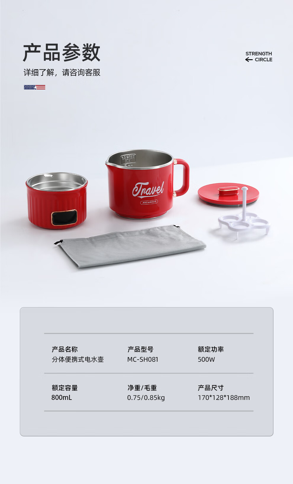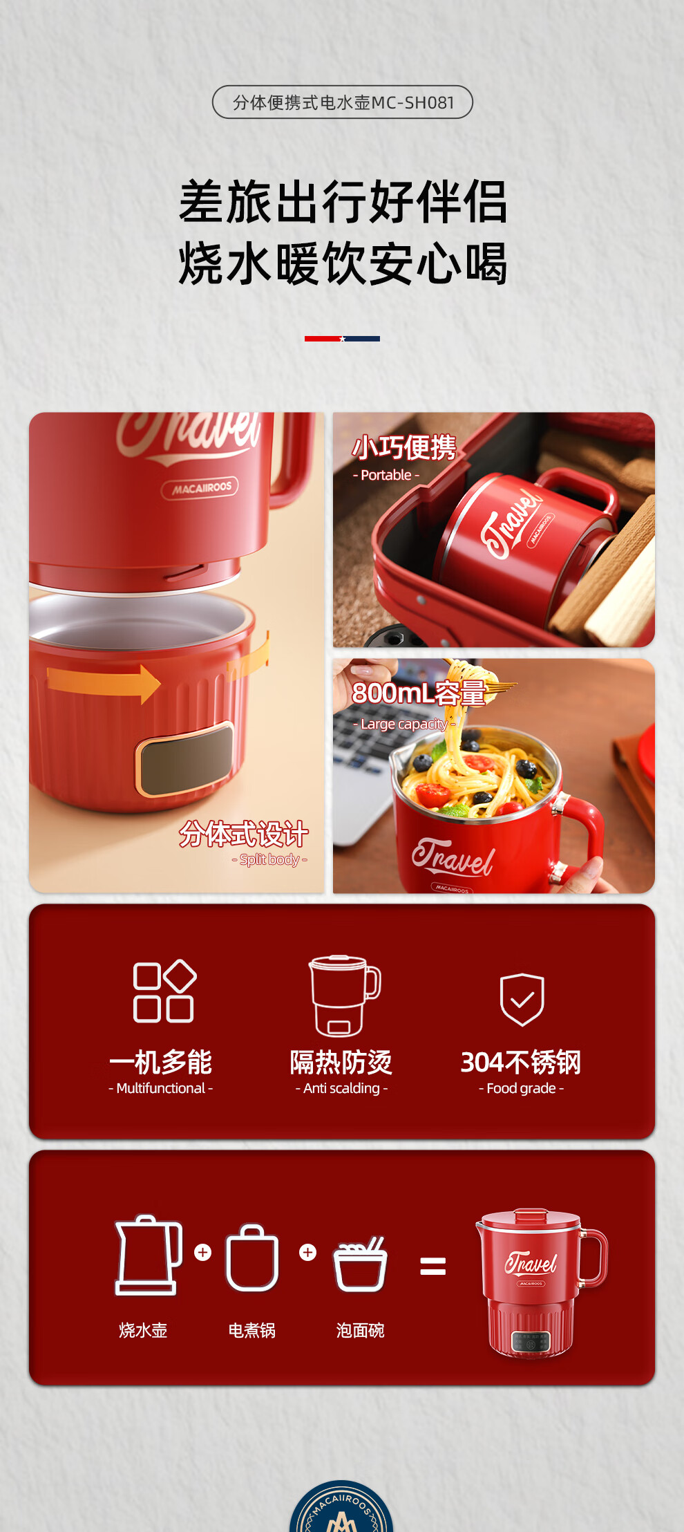 【小家电】迈卡罗MC-SH081电热水壶304不锈钢烧水壶户外旅游分体式便携水壶HF