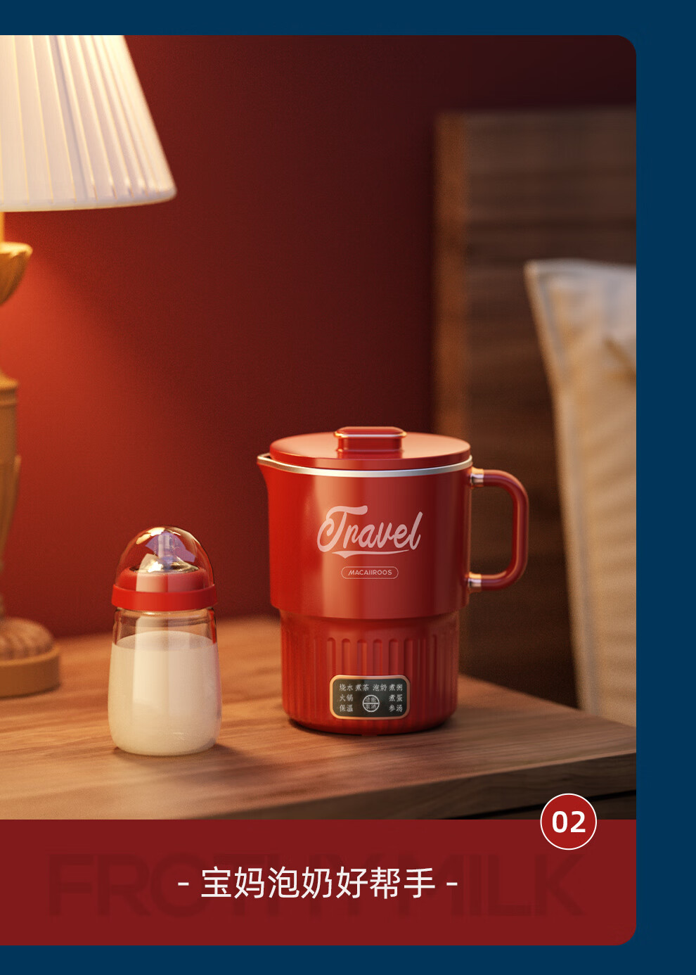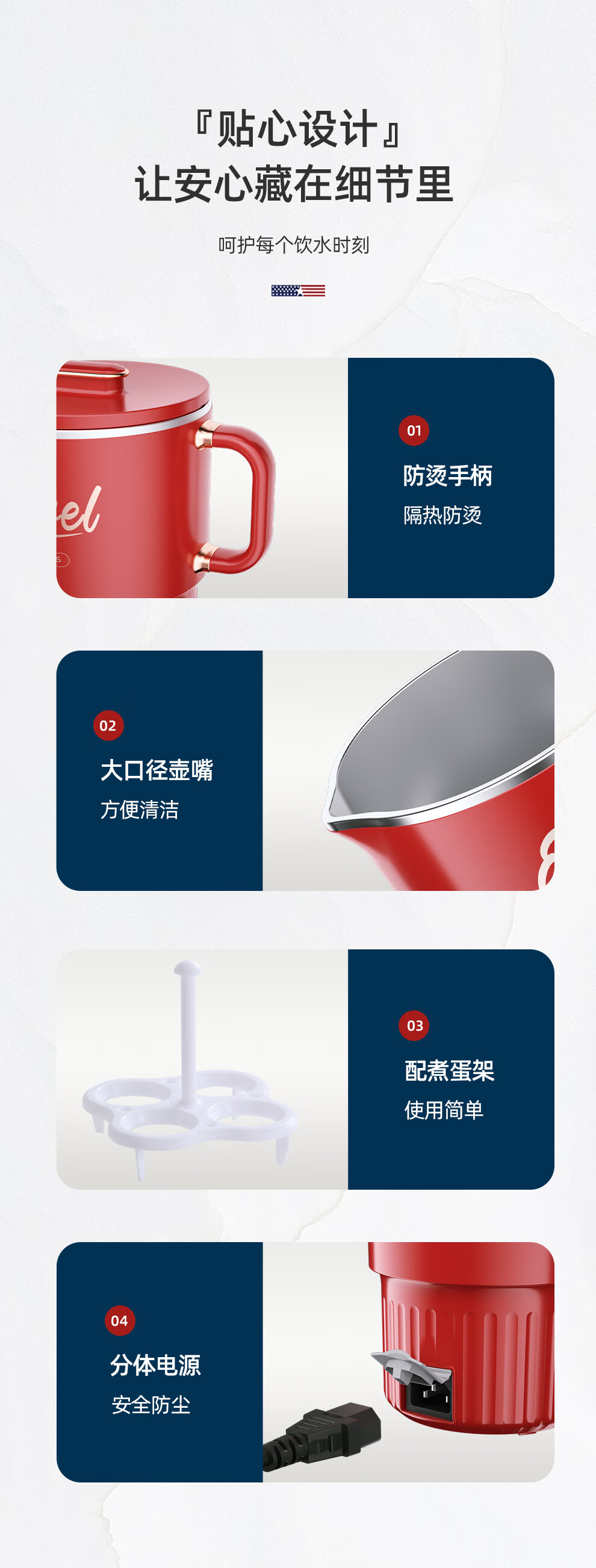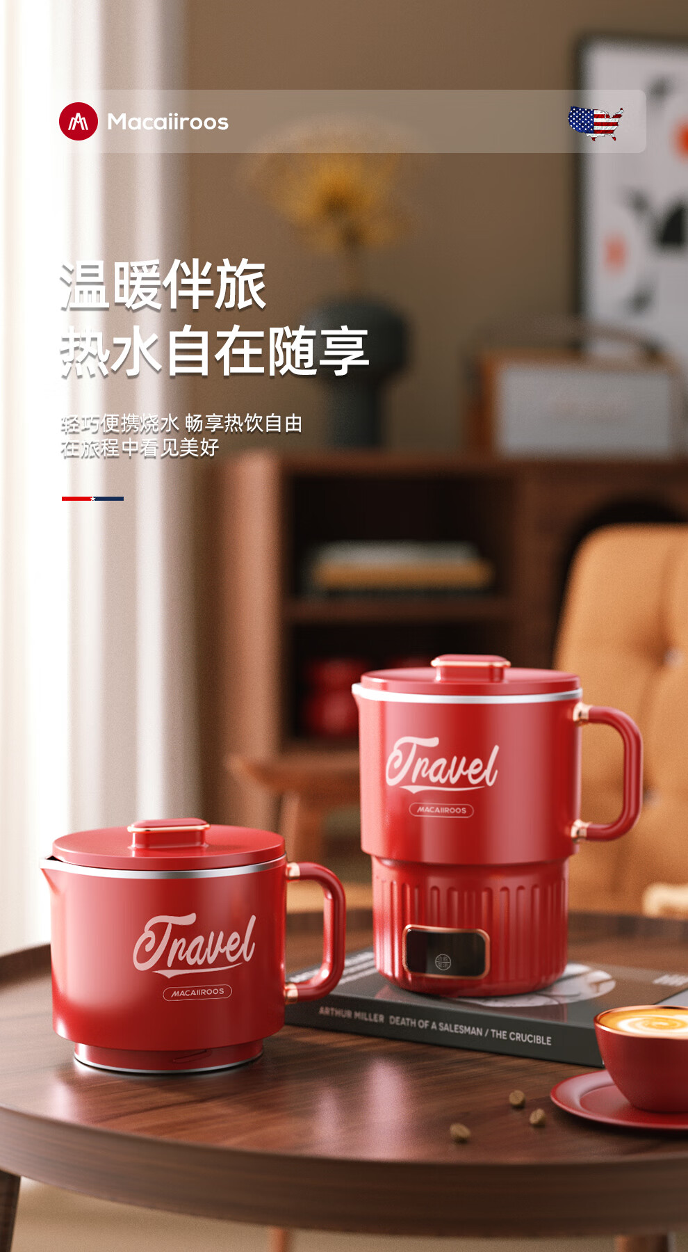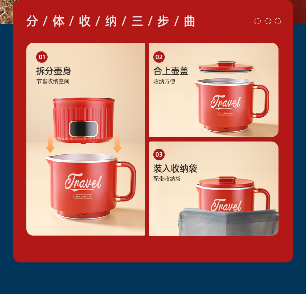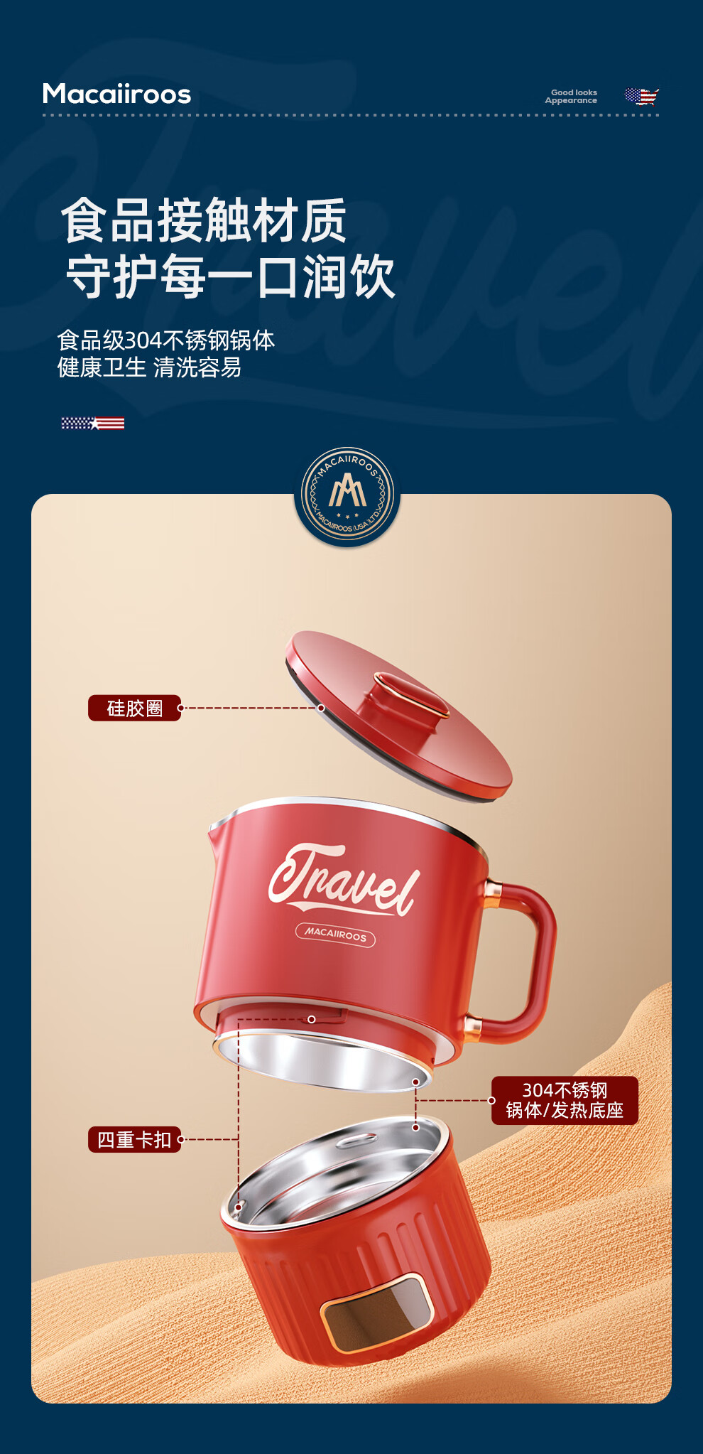 【小家电】迈卡罗MC-SH081电热水壶304不锈钢烧水壶户外旅游分体式便携水壶HF