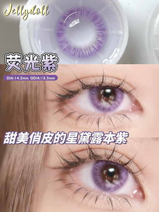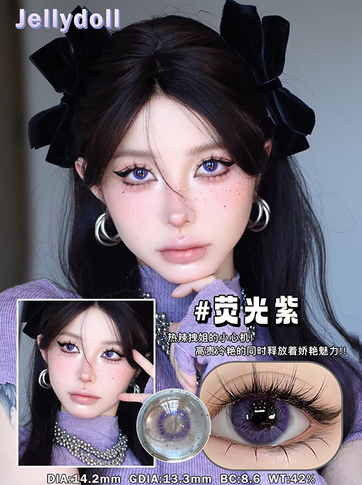 Jellydoll 荧光紫 月抛 两片 14.2mm 参考着色 13.3mm 基弧 8.6 含水 42% 新锐国货