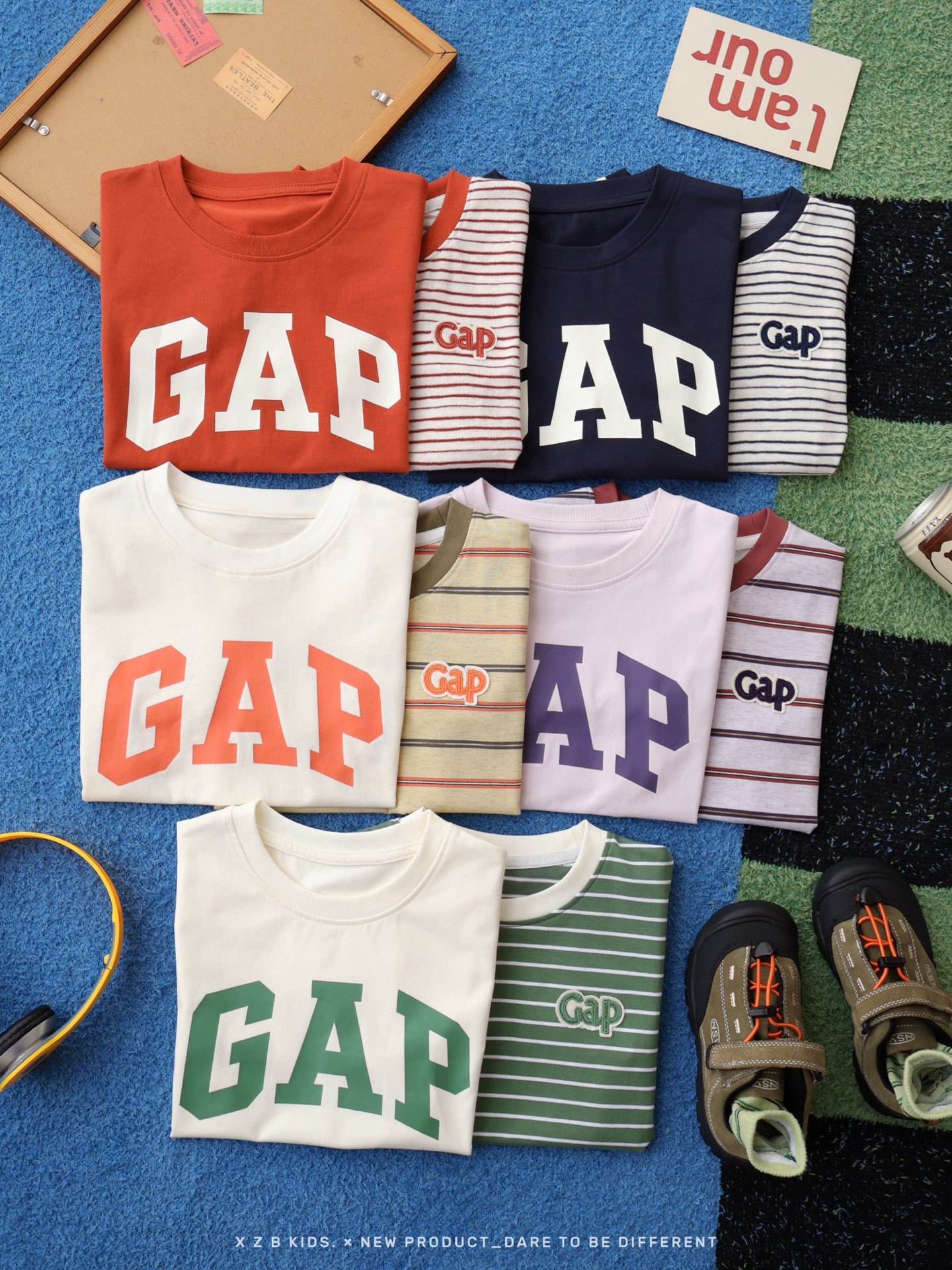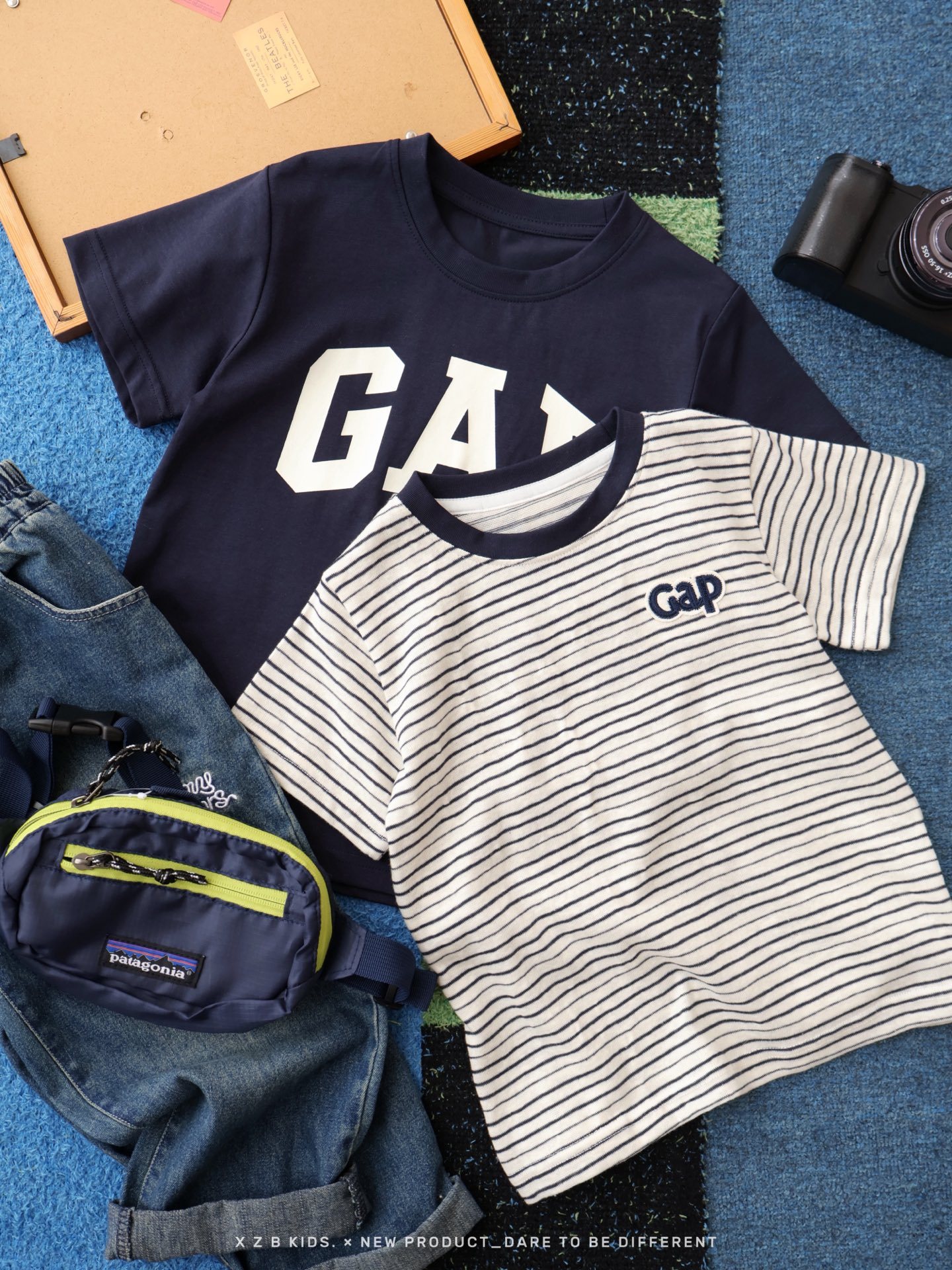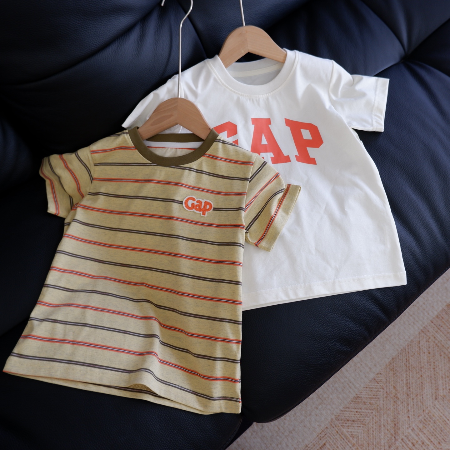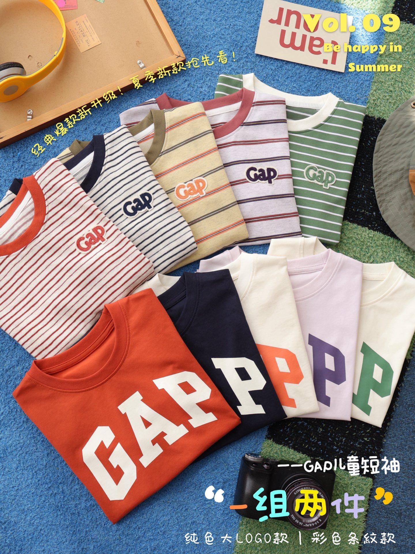 💰68元包邮, 【一组两件】 G家经典款纯色大logo+条纹刺绣 儿童短袖T恤
