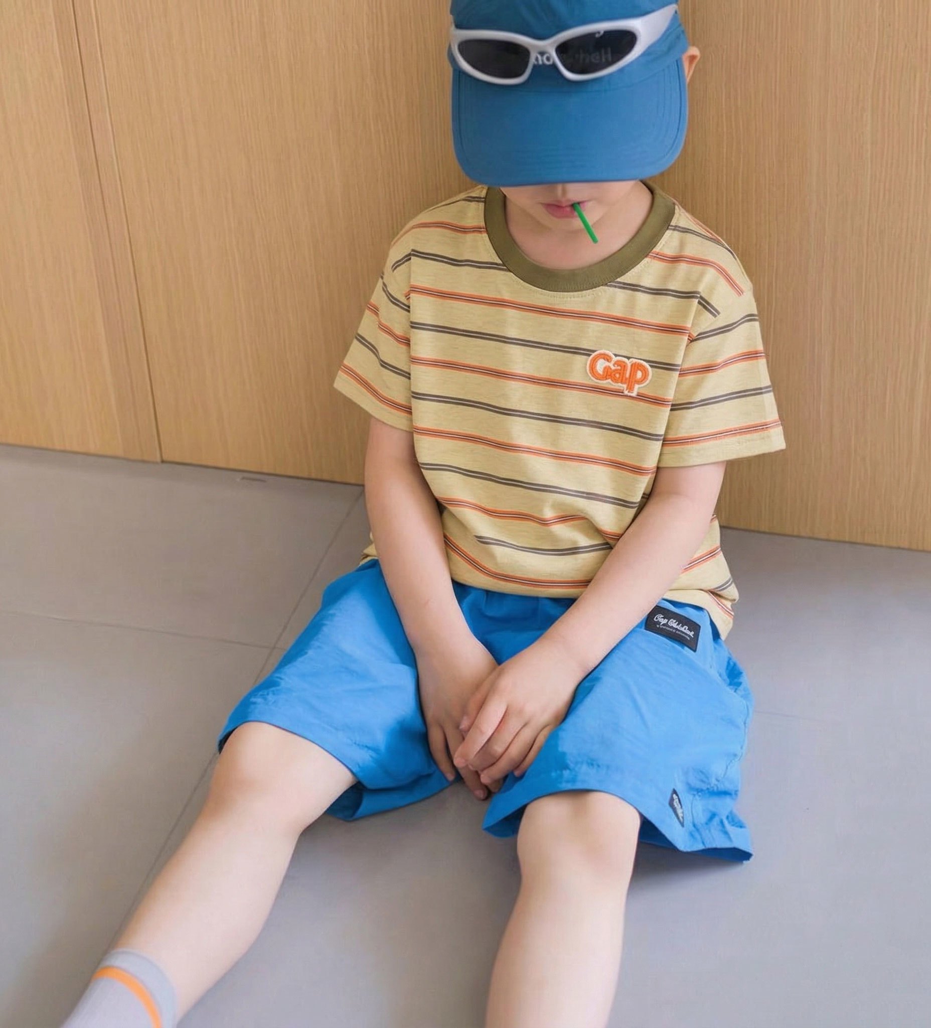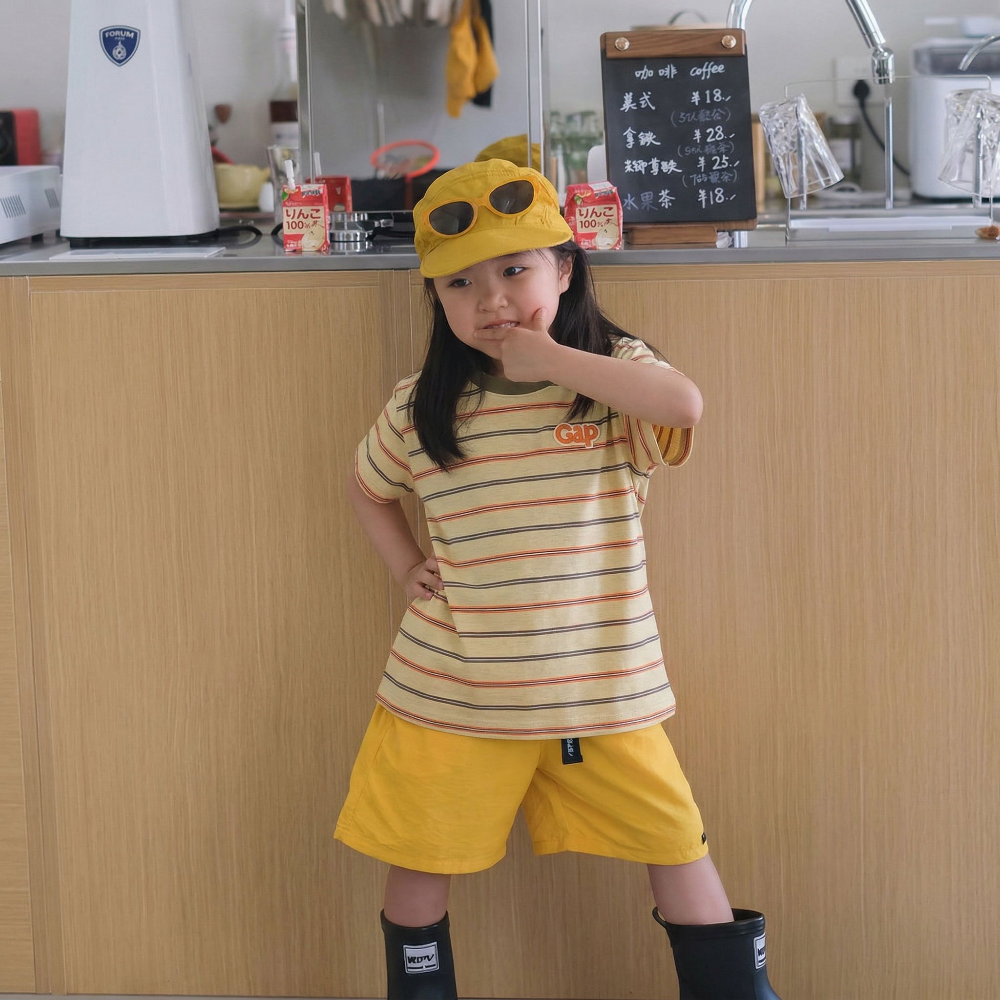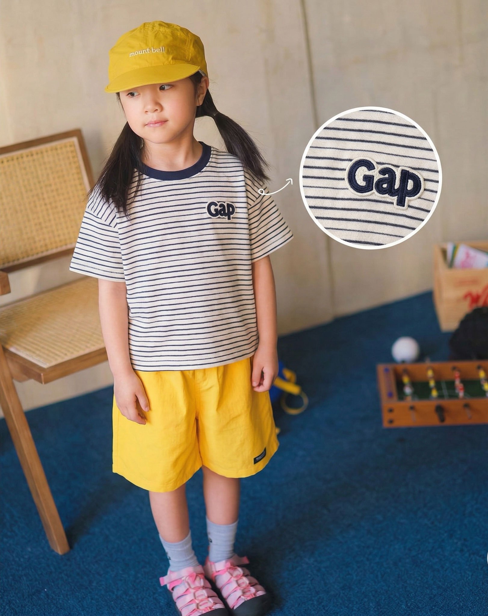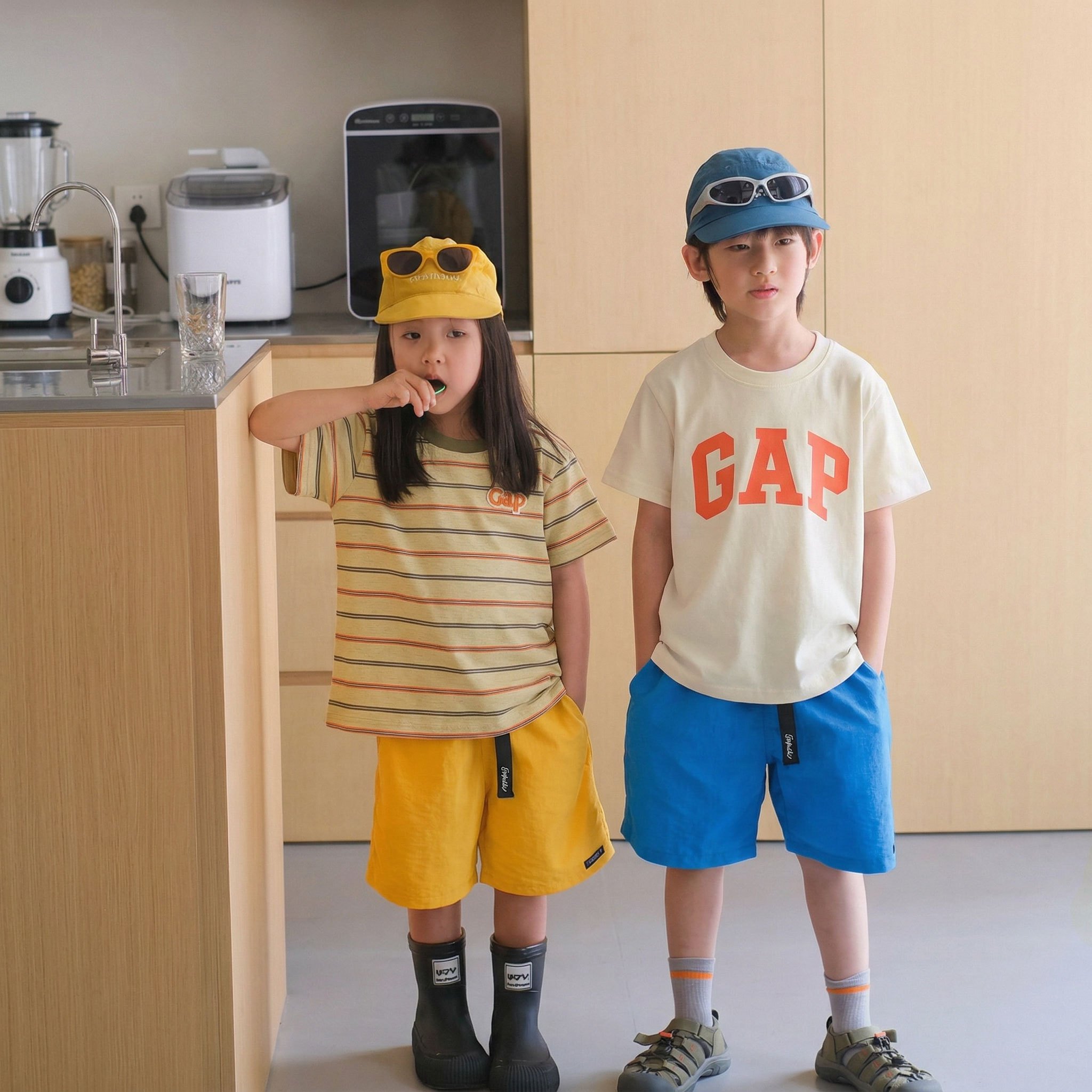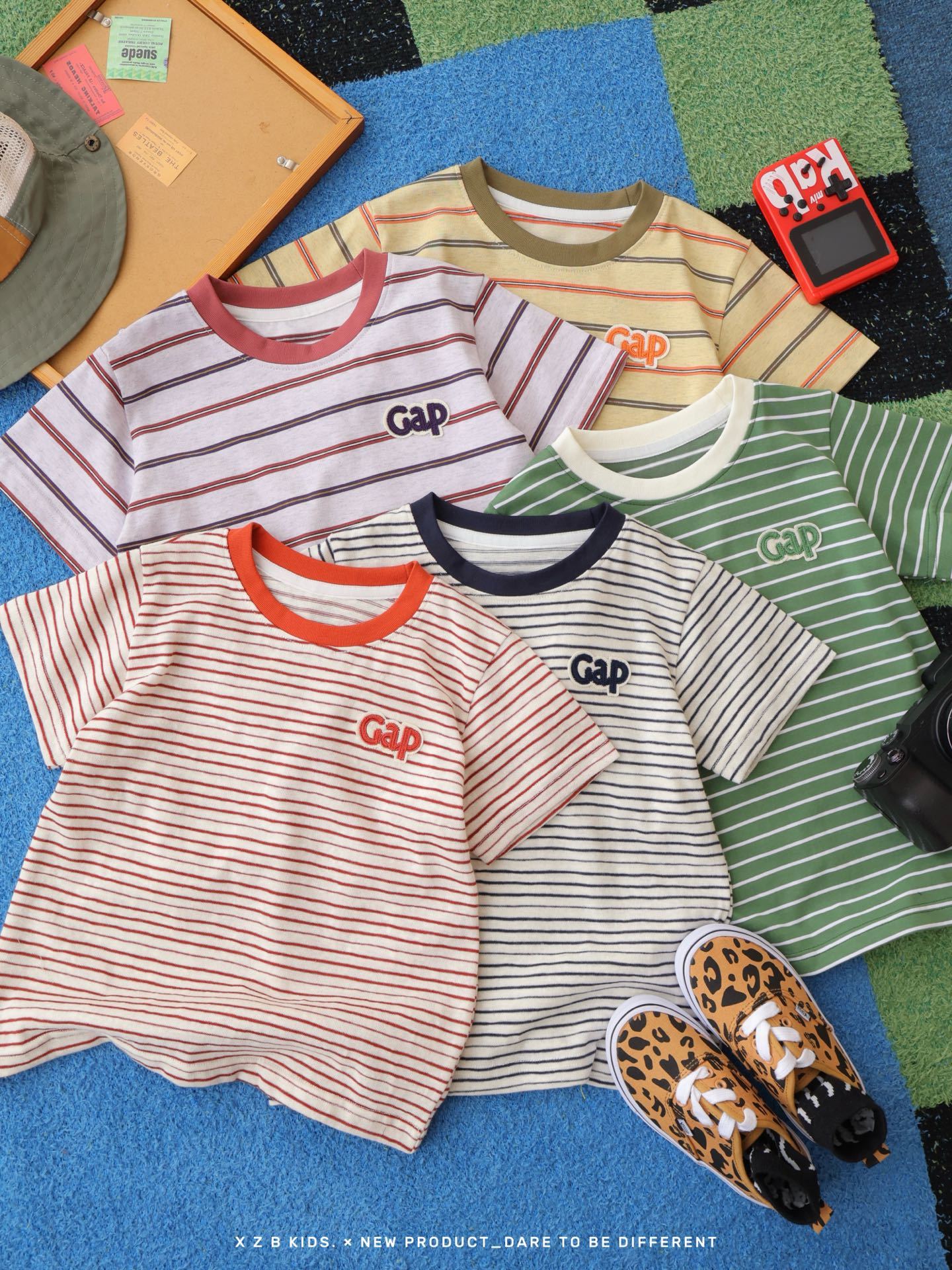 💰68元包邮, 【一组两件】 G家经典款纯色大logo+条纹刺绣 儿童短袖T恤
