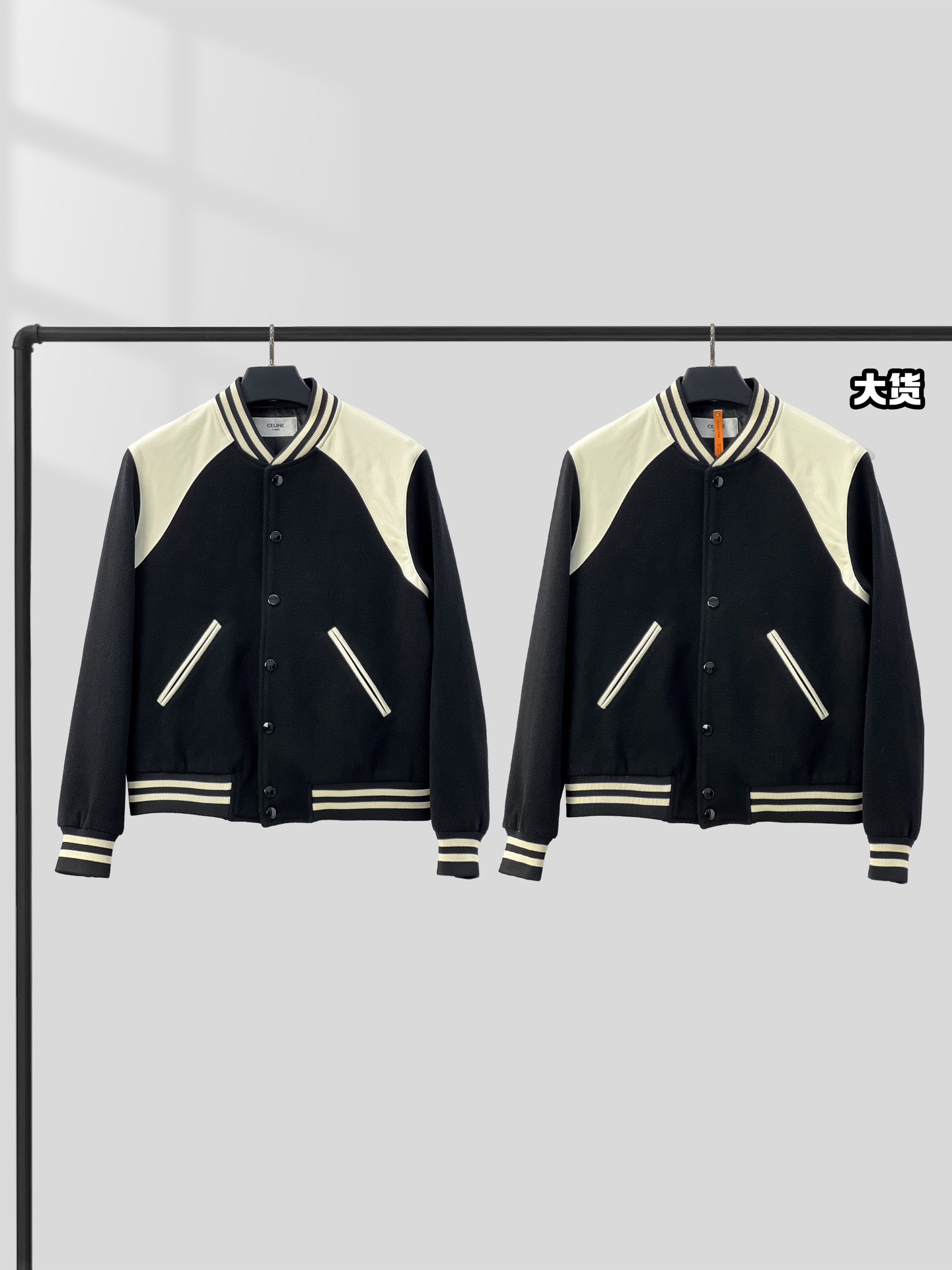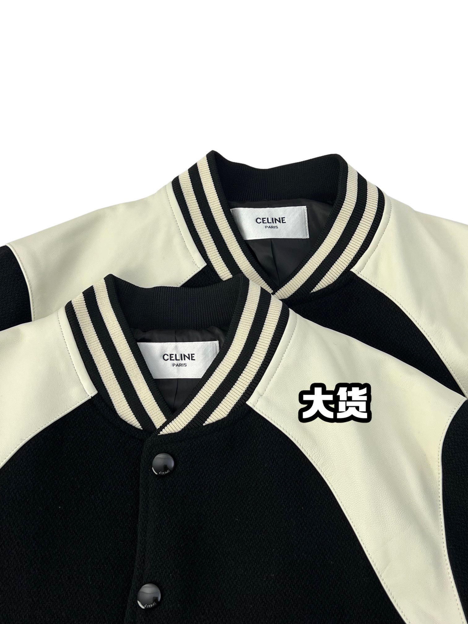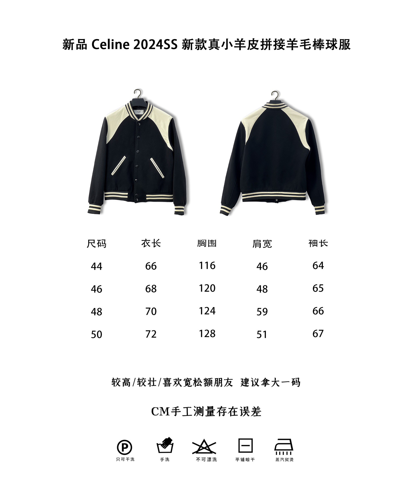 新品 Celine 2024SS 新款真小羊皮拼接羊毛棒球服