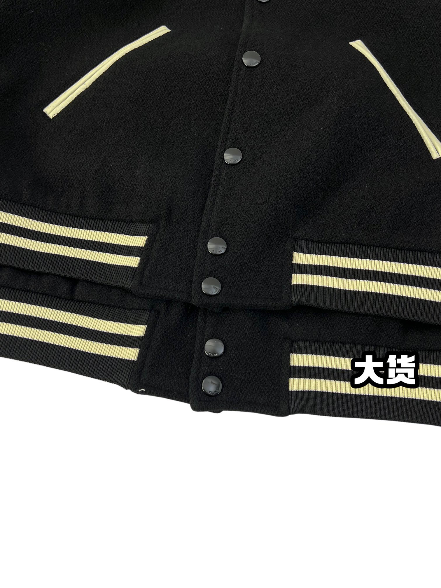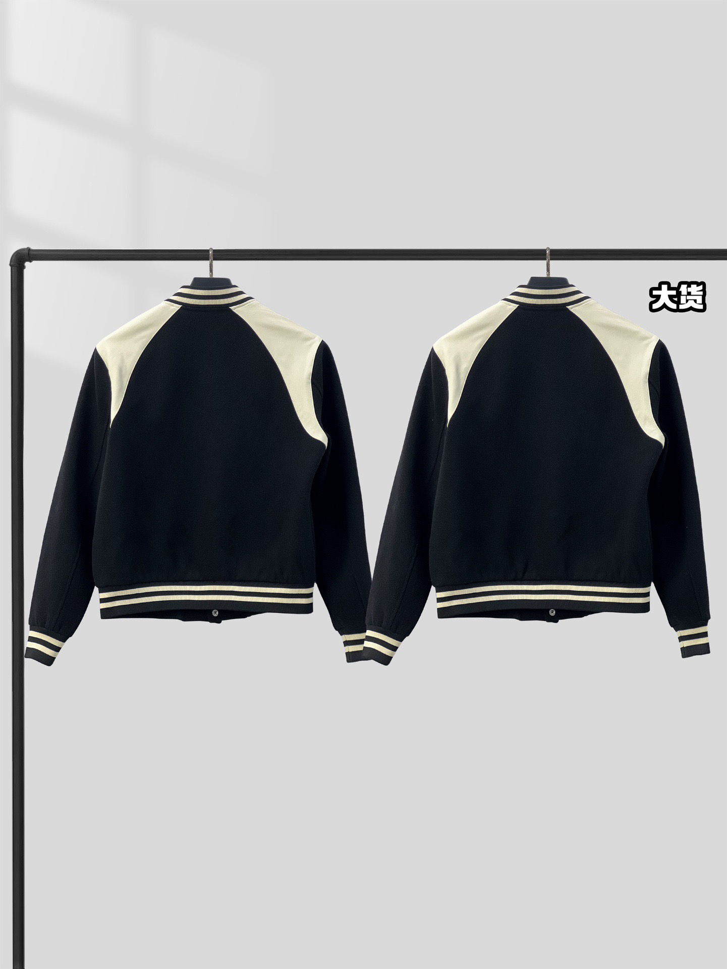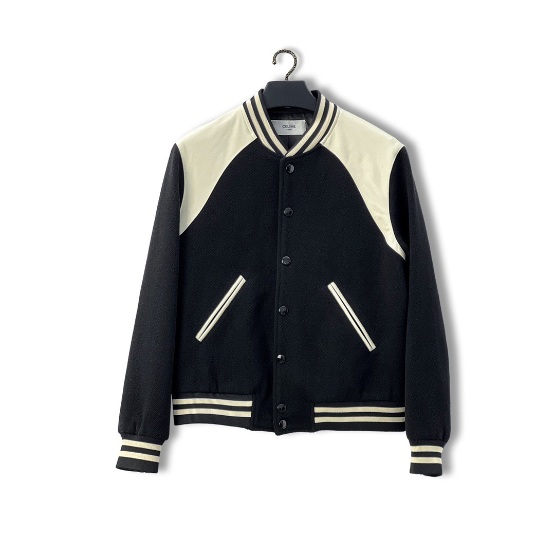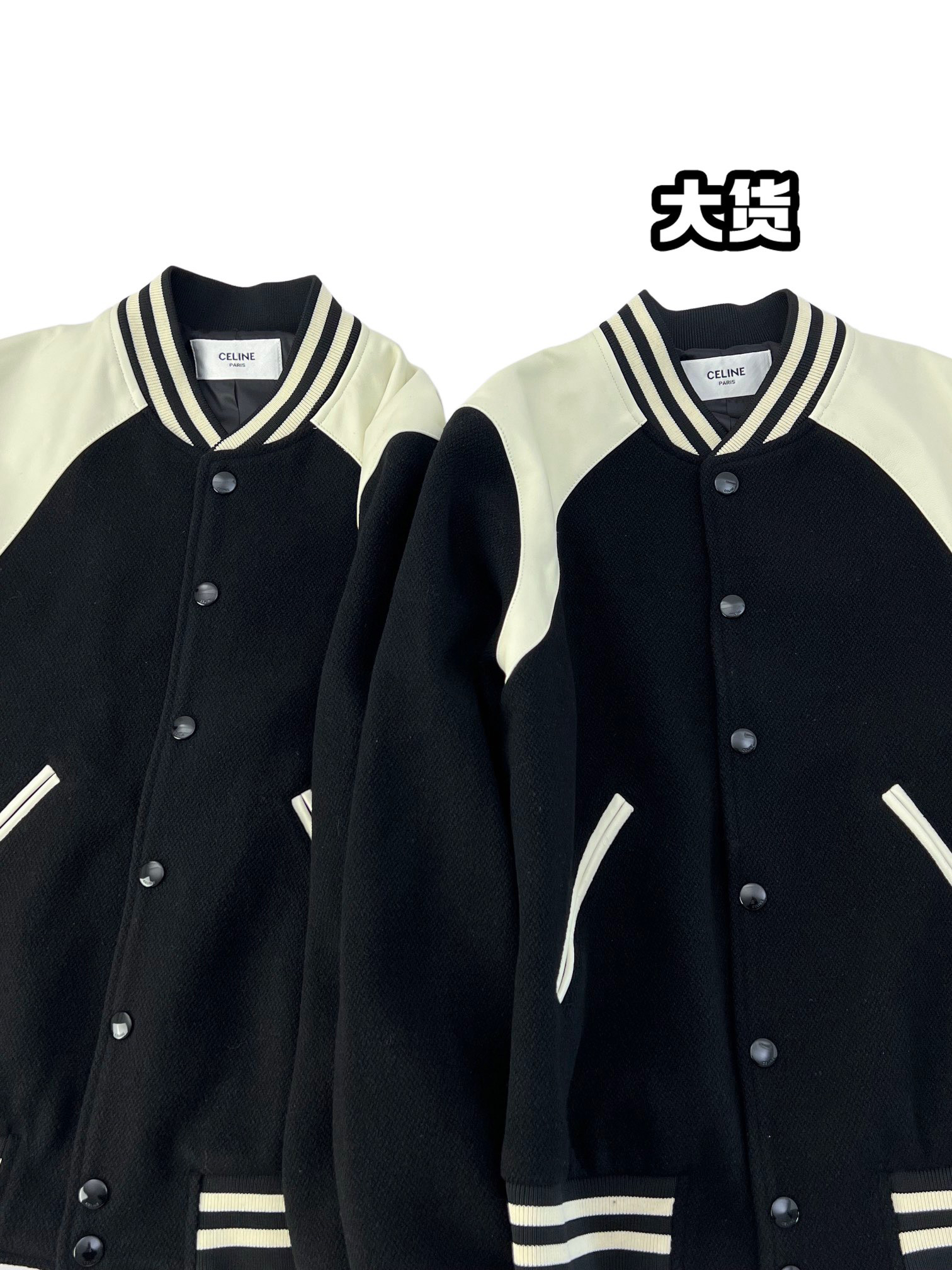 新品 Celine 2024SS 新款真小羊皮拼接羊毛棒球服