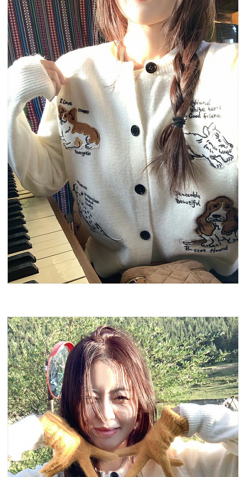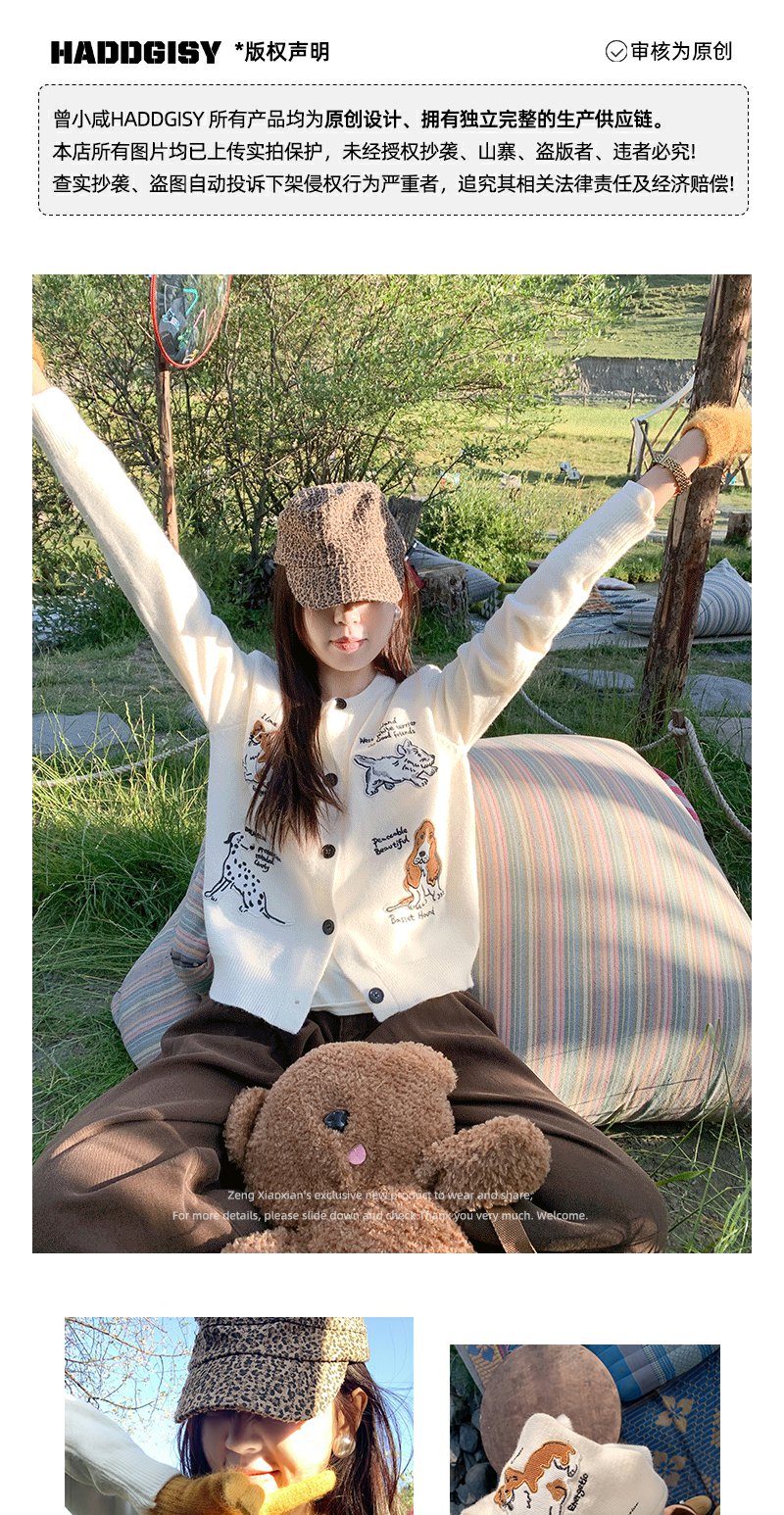 <曾小咸推荐>韩系童趣小狗狗绣花排扣毛衣