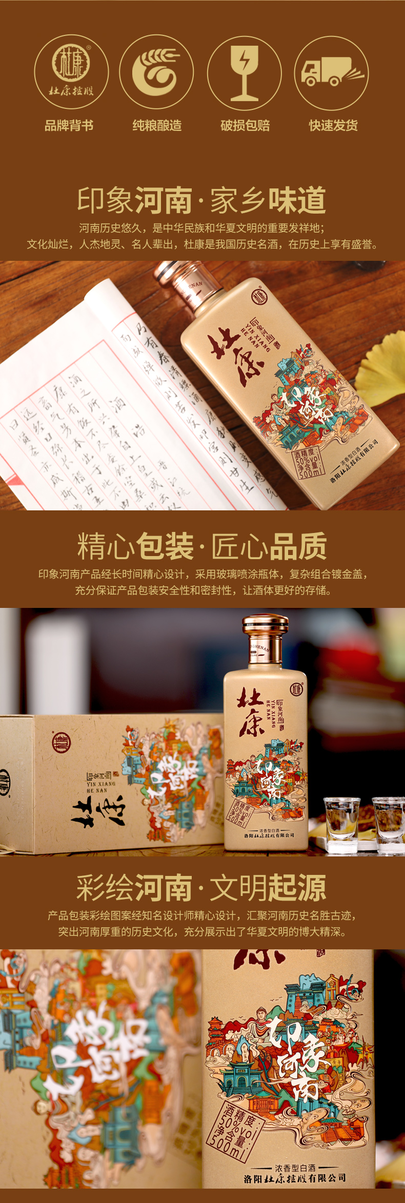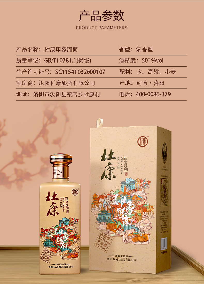杜康印象河南50°500mL*6瓶整箱浓香型白酒
