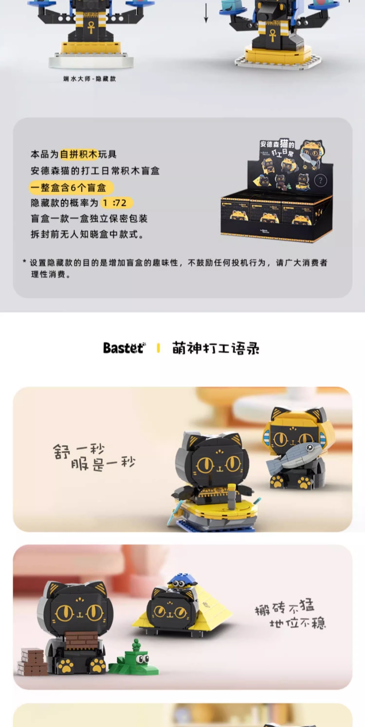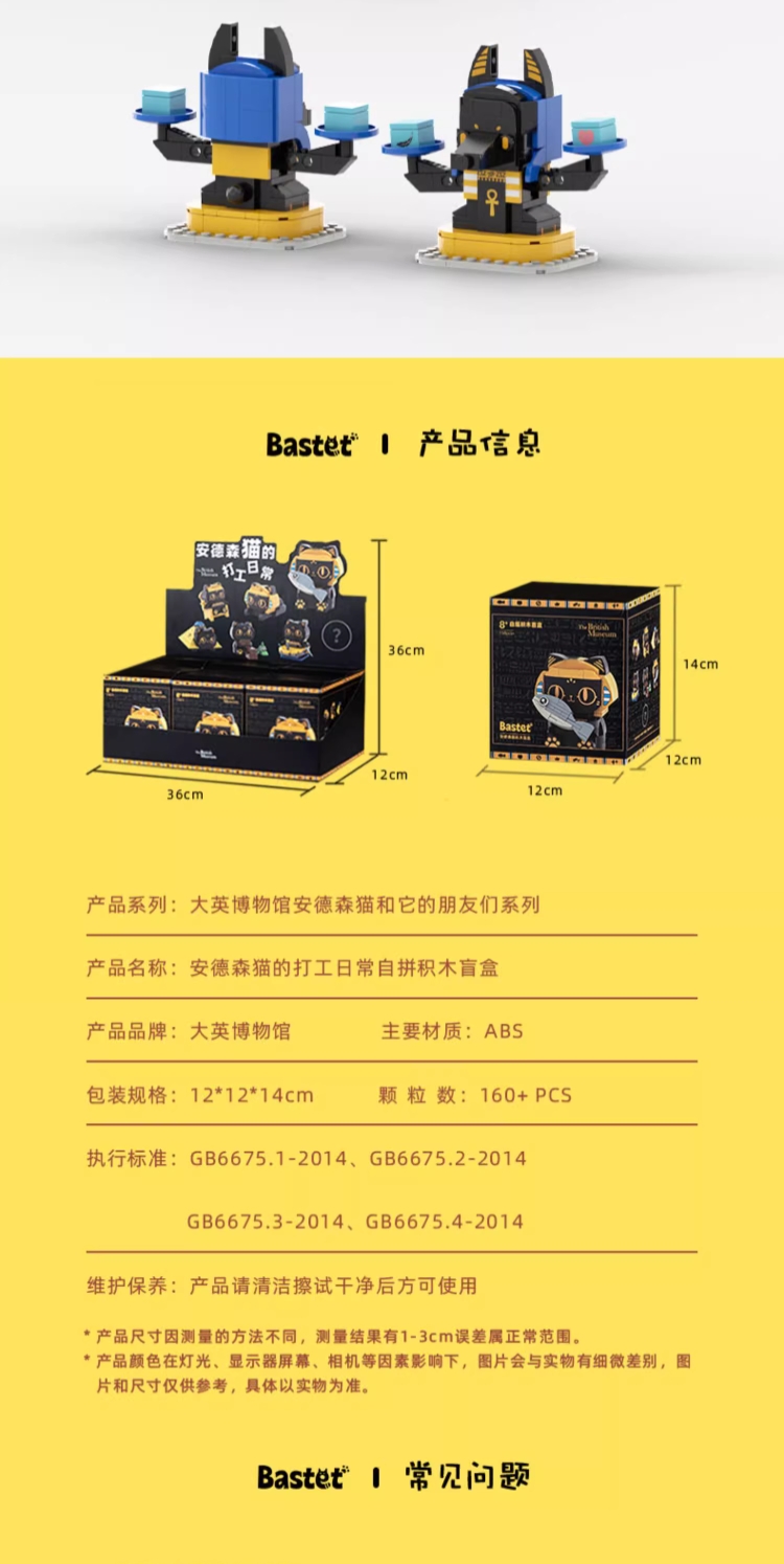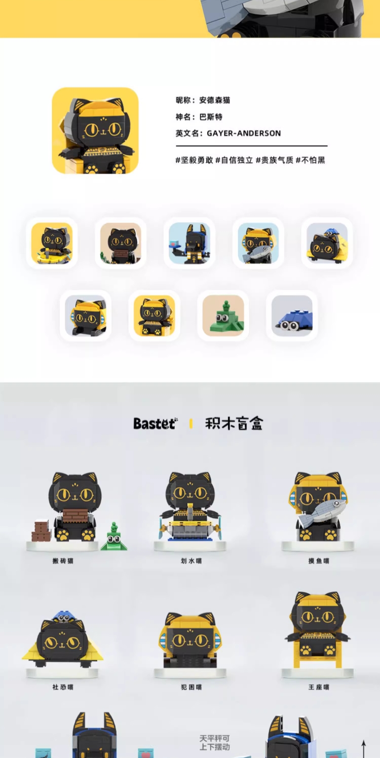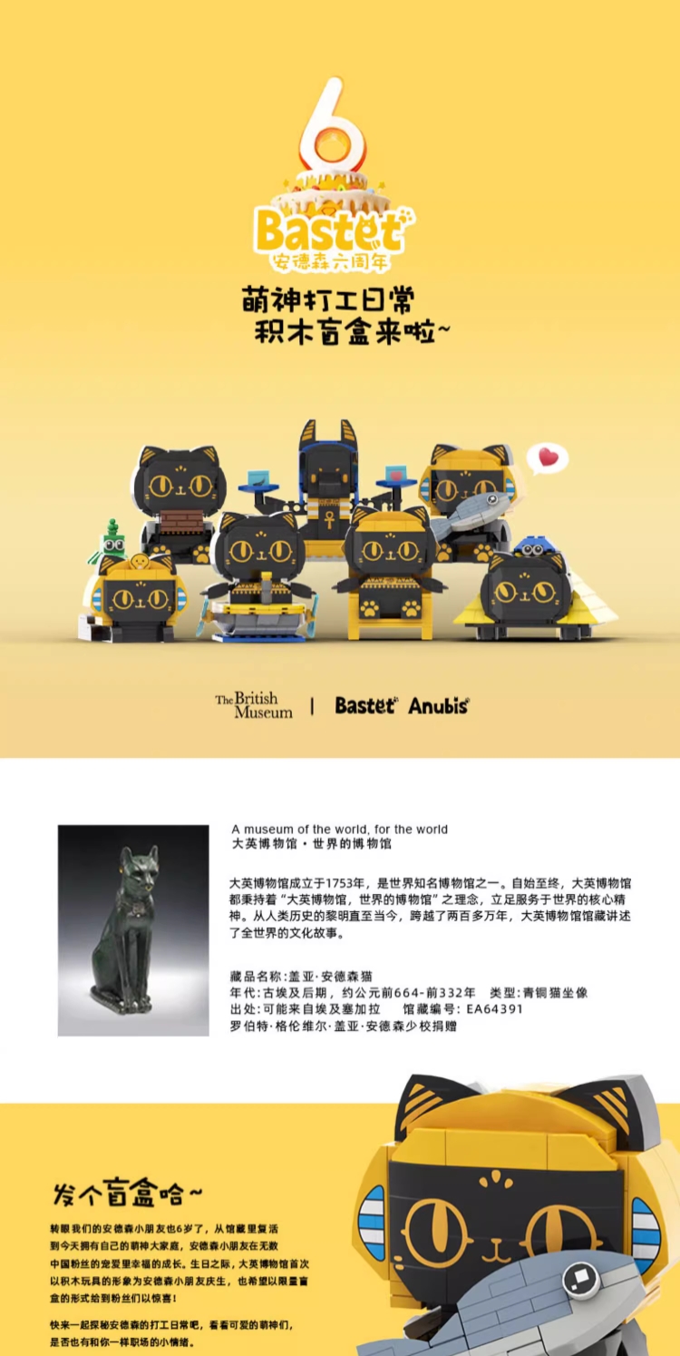 大英博物馆盖亚·安德森猫和她的朋友们系列 【安德森猫的打工日常】DIY拼搭积木盲盒 桌面摆件