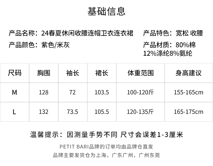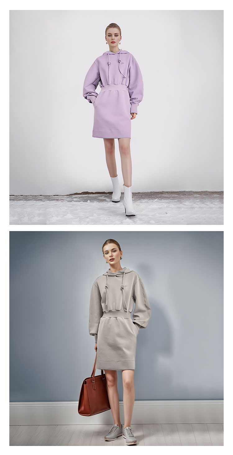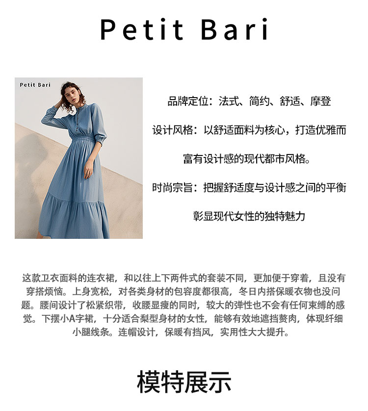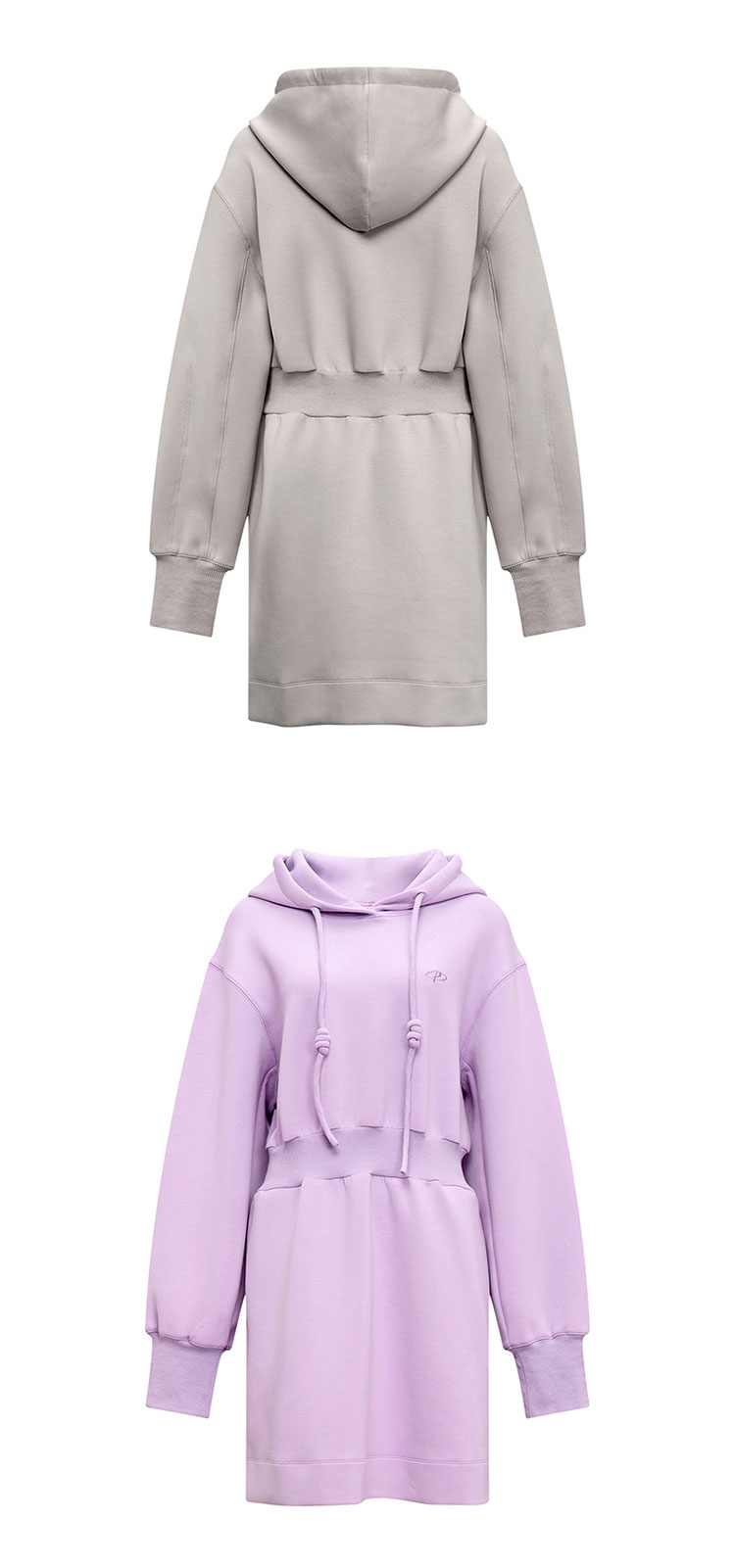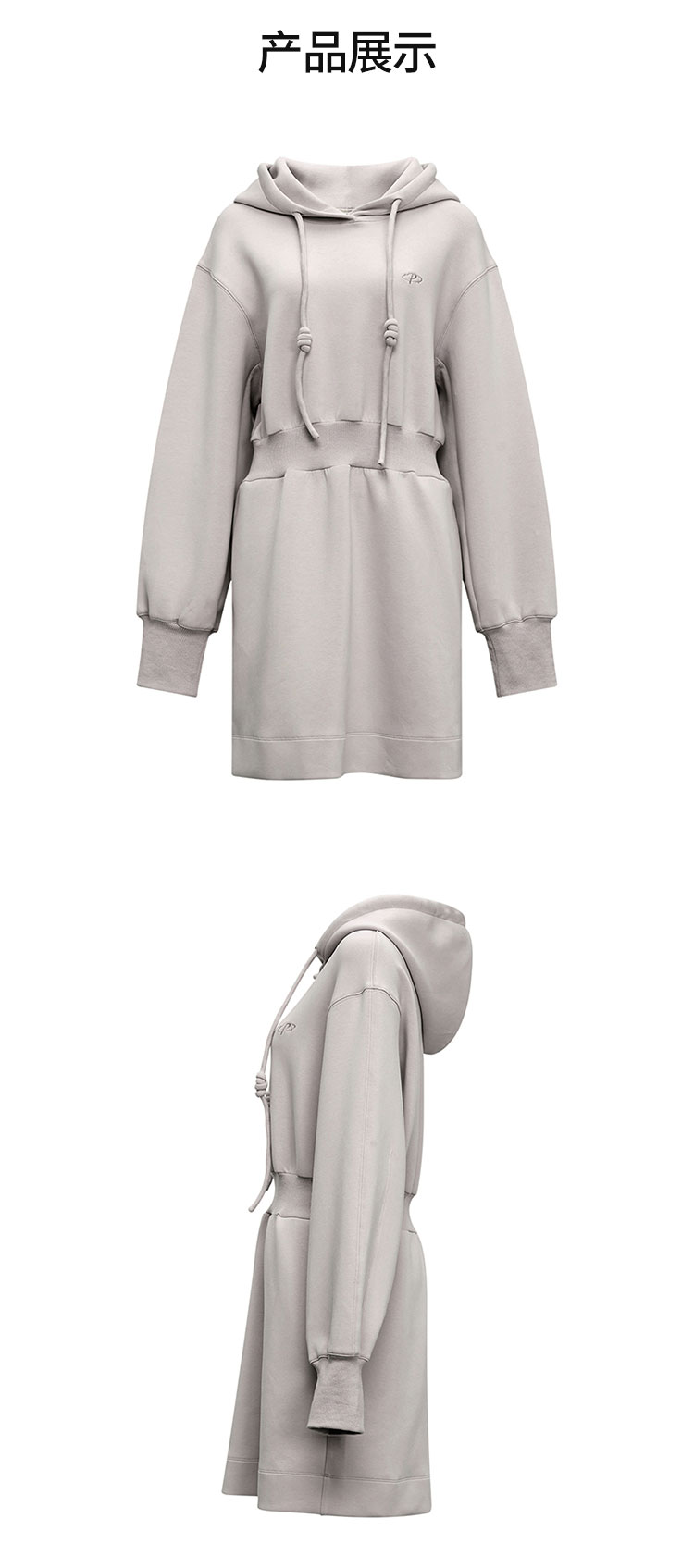 【2件9折】【Petit Bari】(多色)简约休闲收腰连帽卫衣连衣裙