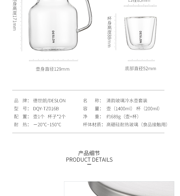德世朗 清韵玻璃冷水壶套装DQY-TZ016B