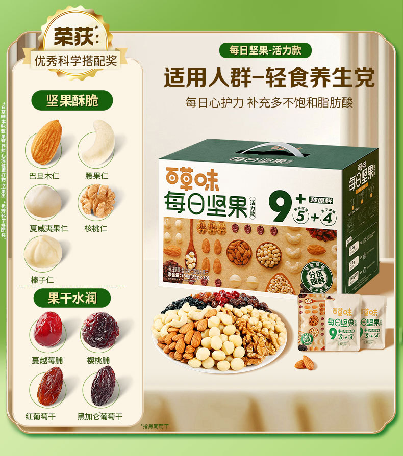 百草味 每日坚果 750g(5+4/盒装)活力款