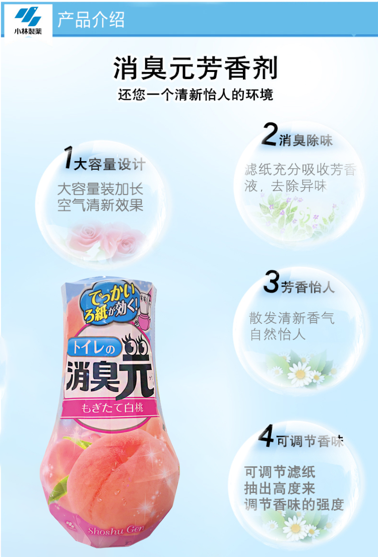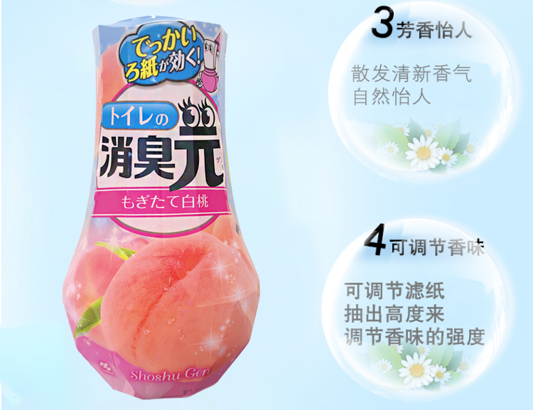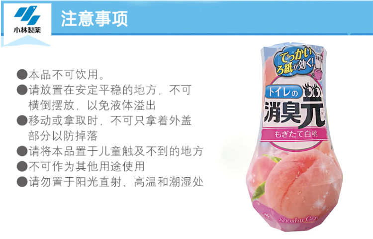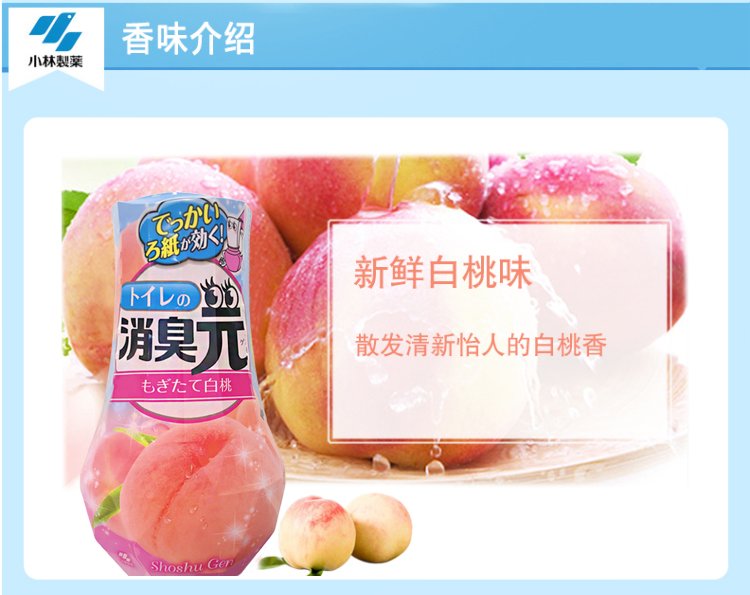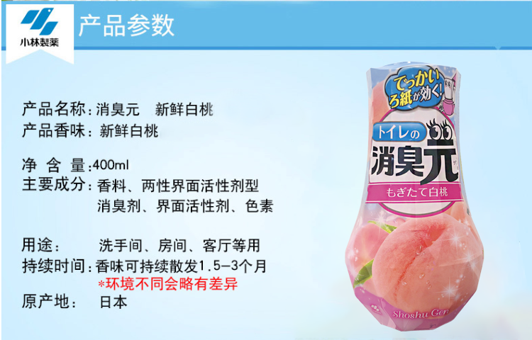 小林制药日本进口去异味除臭剂室内空气清新剂芳香剂厕所用消臭元(新鲜白桃)400ml
