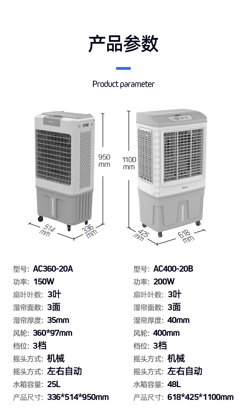 美的(Midea)AC400-20B电风商用大容量工业冷风扇水冷空调扇降温加湿冷气机可移动工厂车间餐厅(线下同款)