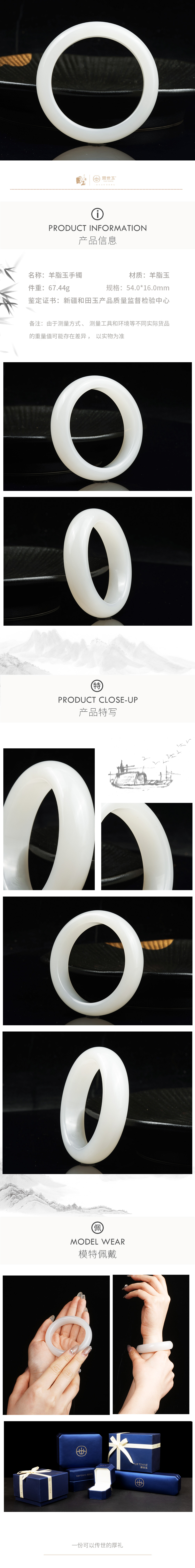 新疆国玉盟世玉和田玉羊脂玉手镯圈口54【带证书·顺丰物流】