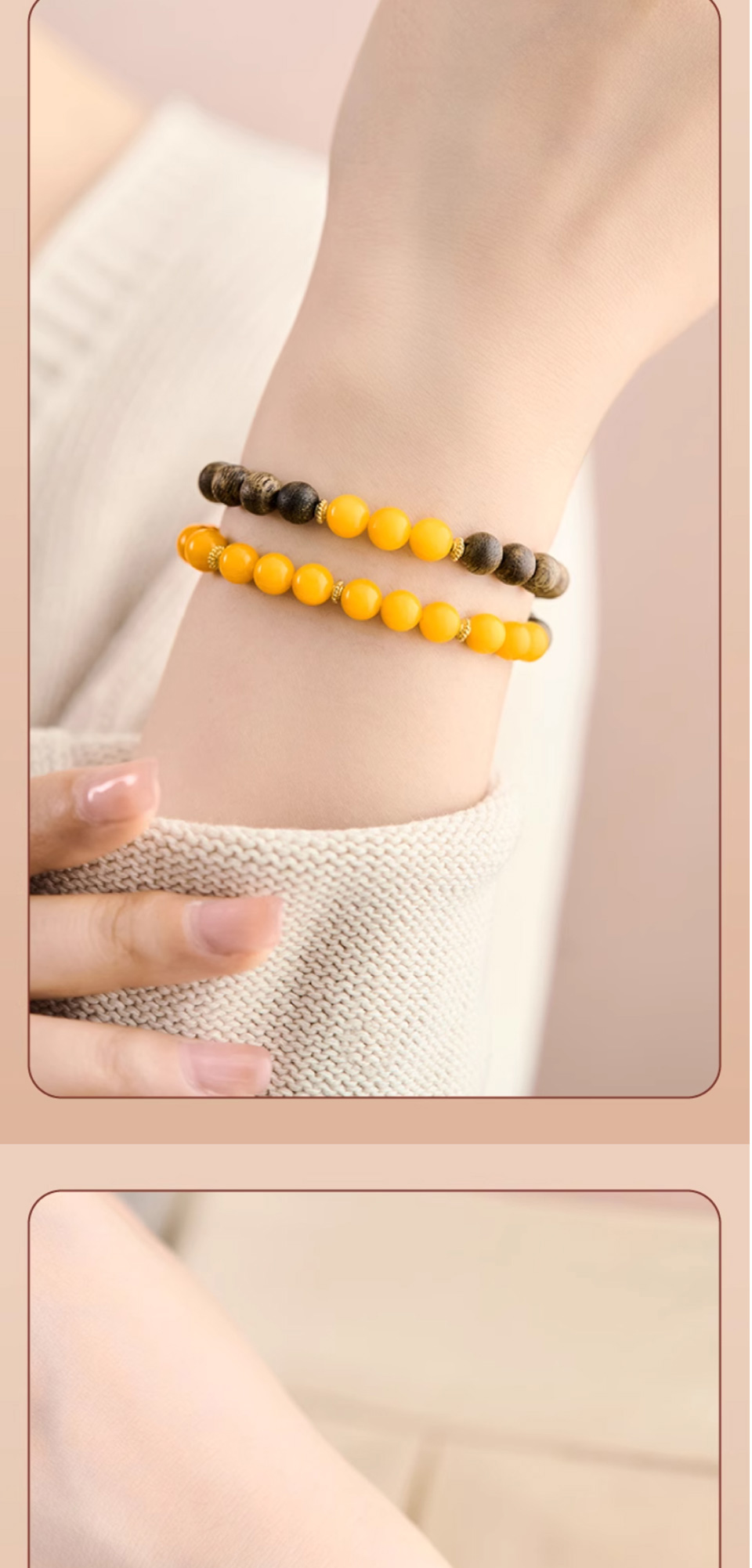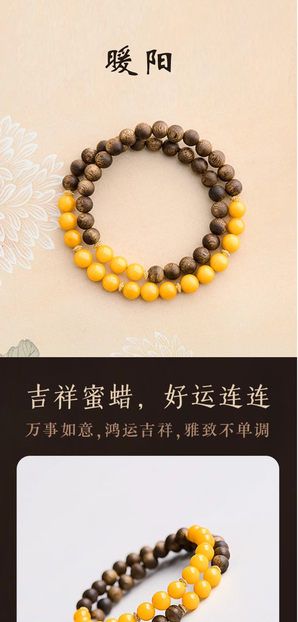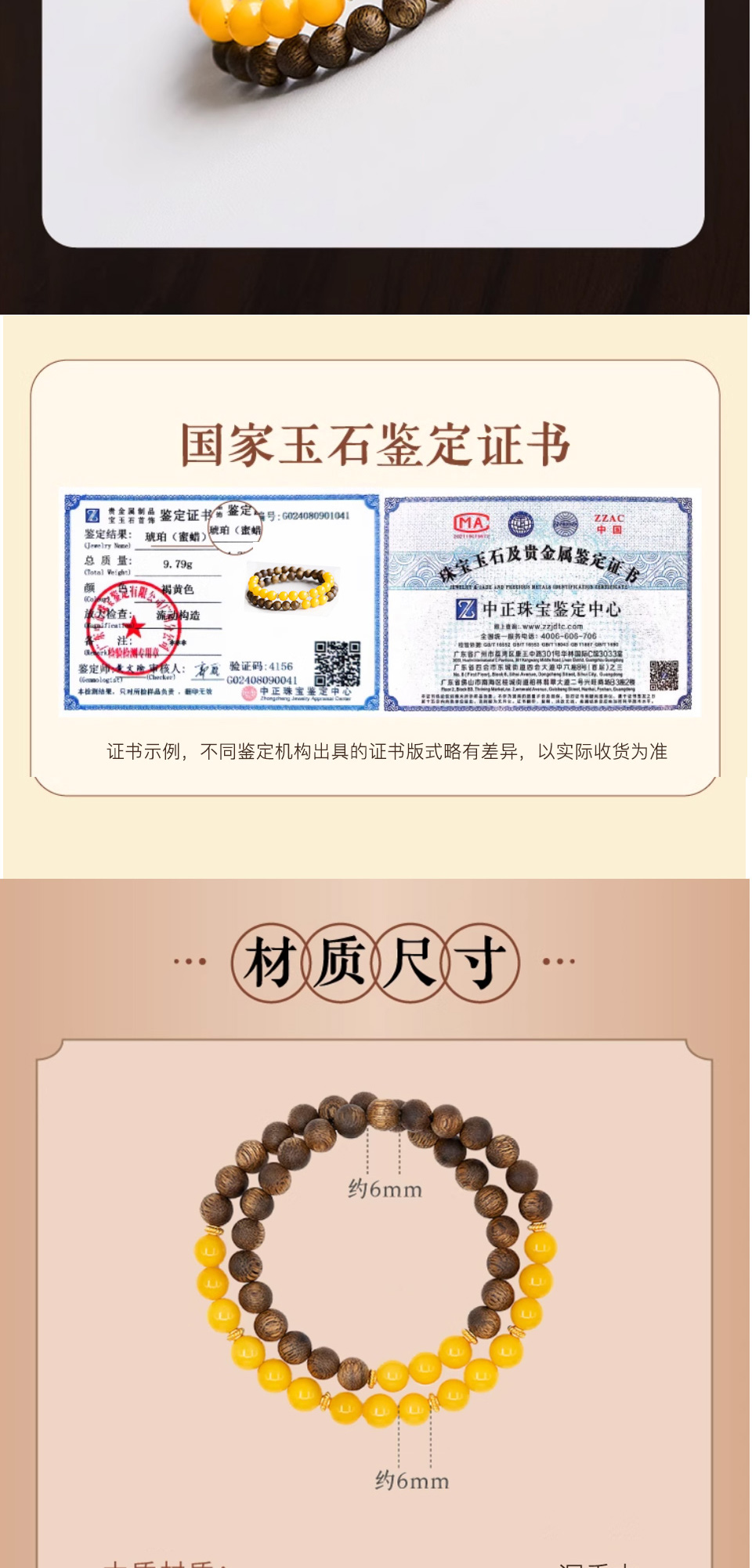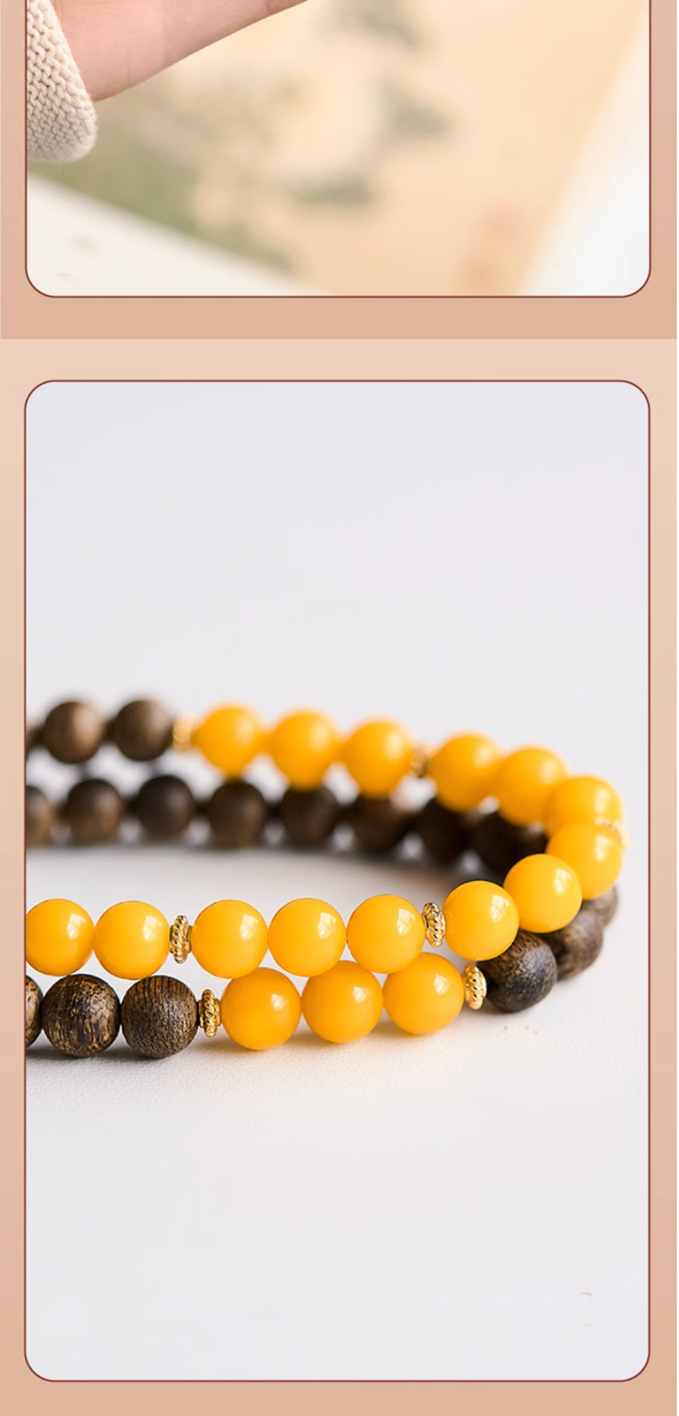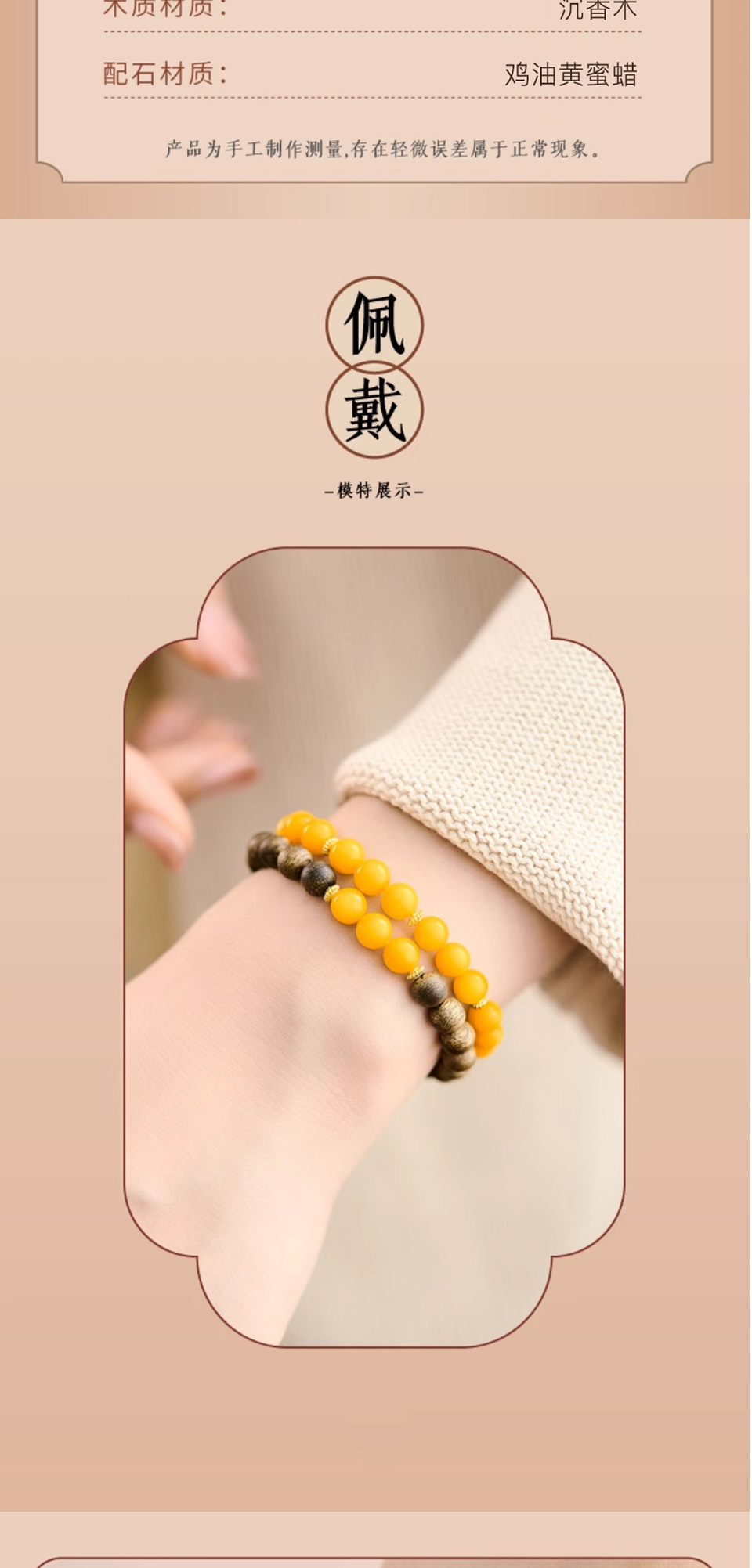 半山半水沉香木鸡油黄蜜蜡双圈手串6mm 叠戴珠串手链自然雅致一物一证
