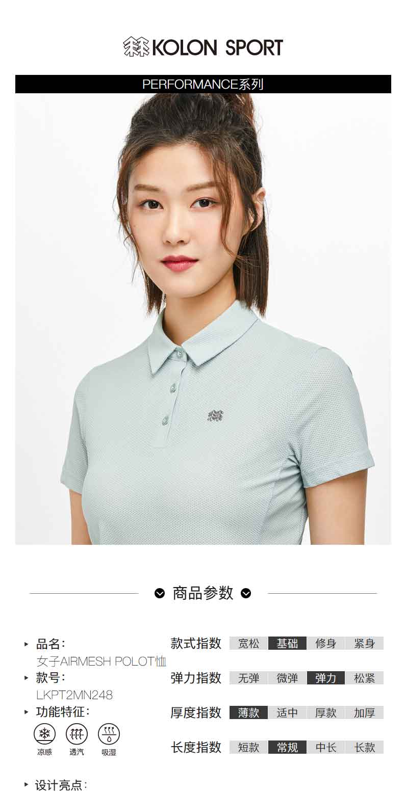 KOLONSPORT可隆短袖凉感T恤户外休闲衣透汽运动上衣防晒POLO衫LKPT2MN248