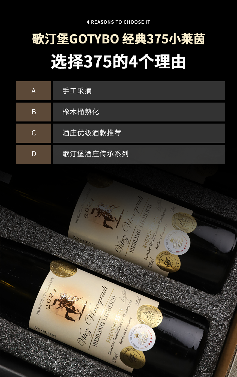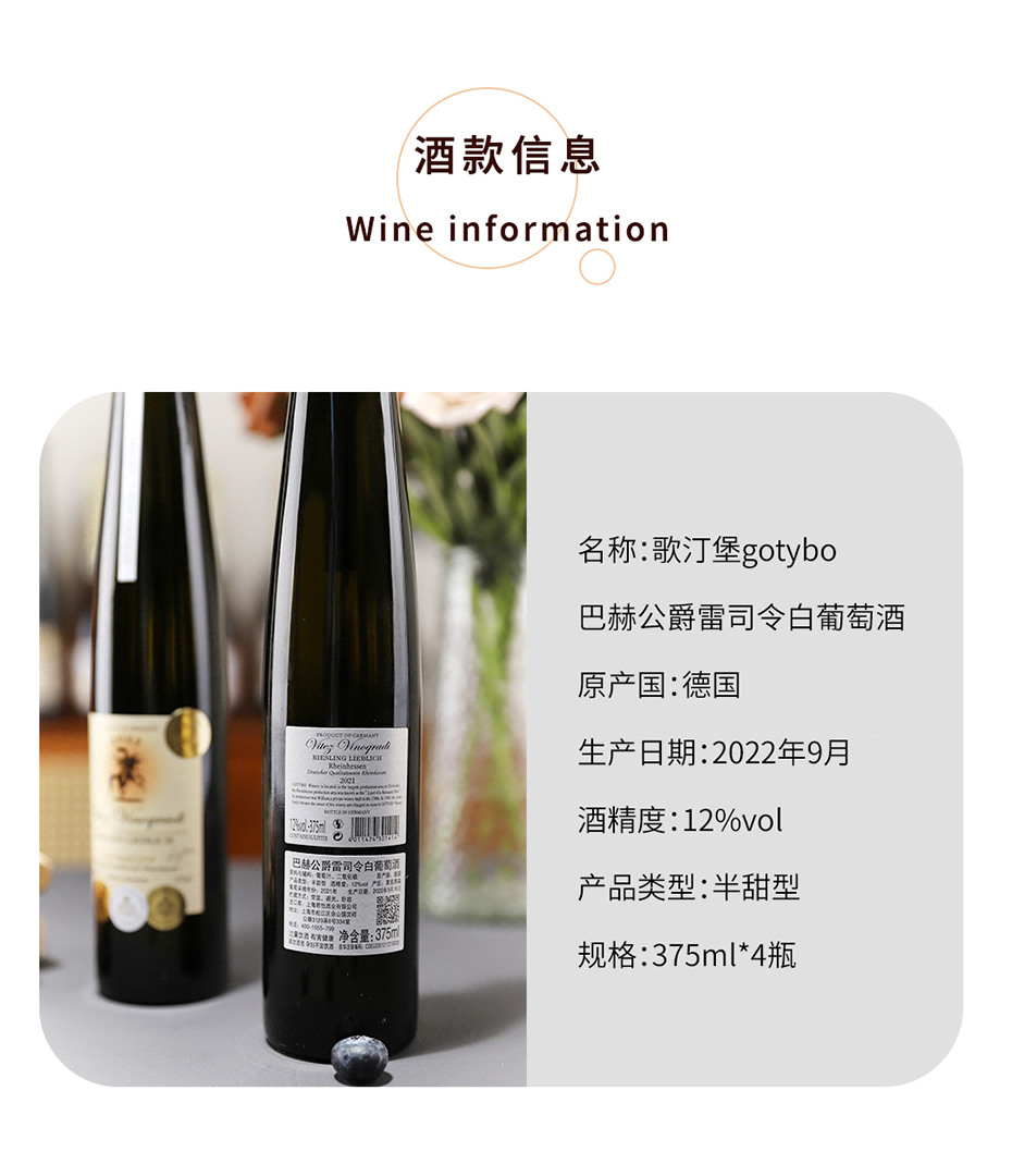 疯抢中!!【赠送手提礼盒】【德国原瓶进口】雷司令半甜白葡萄酒 12%vol 375ml*4瓶