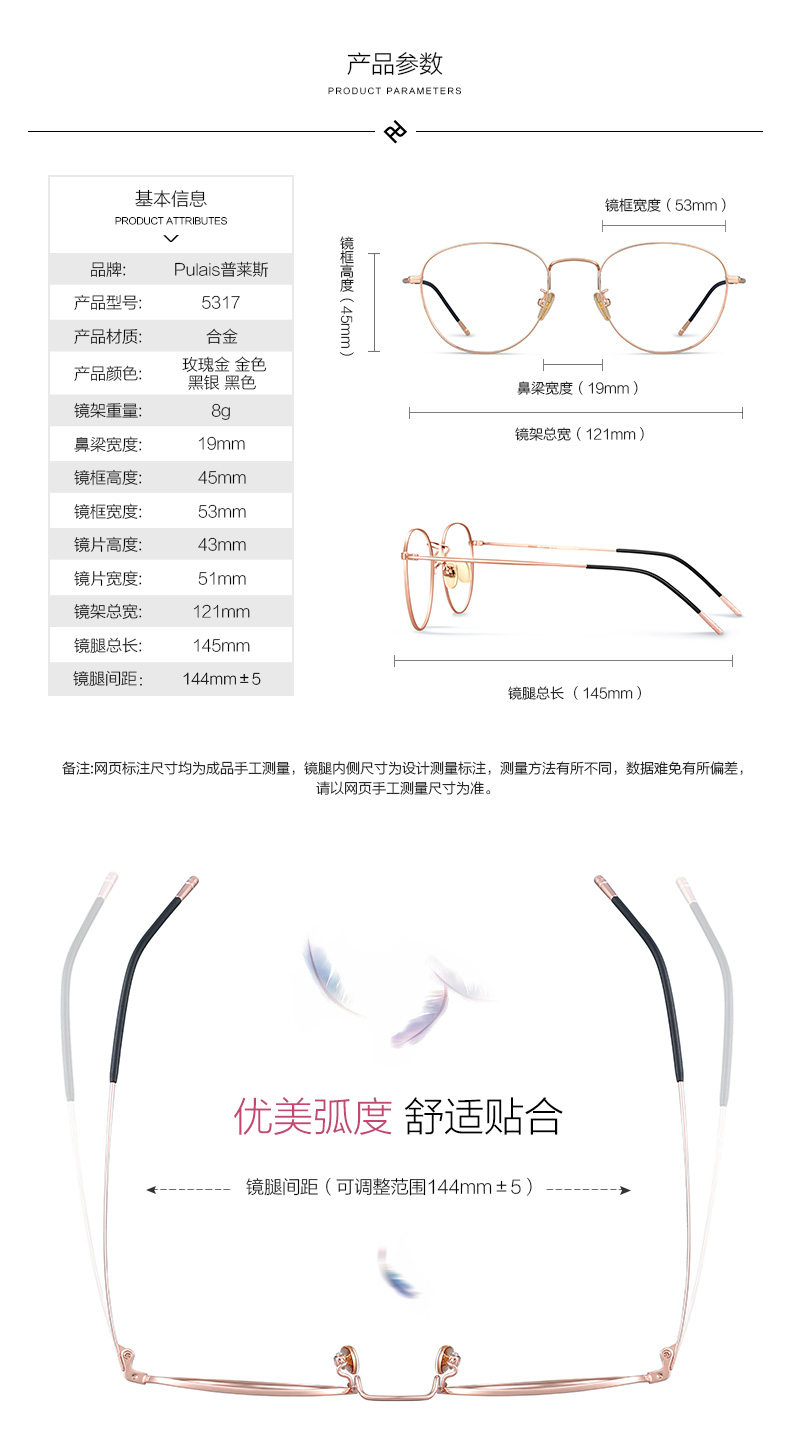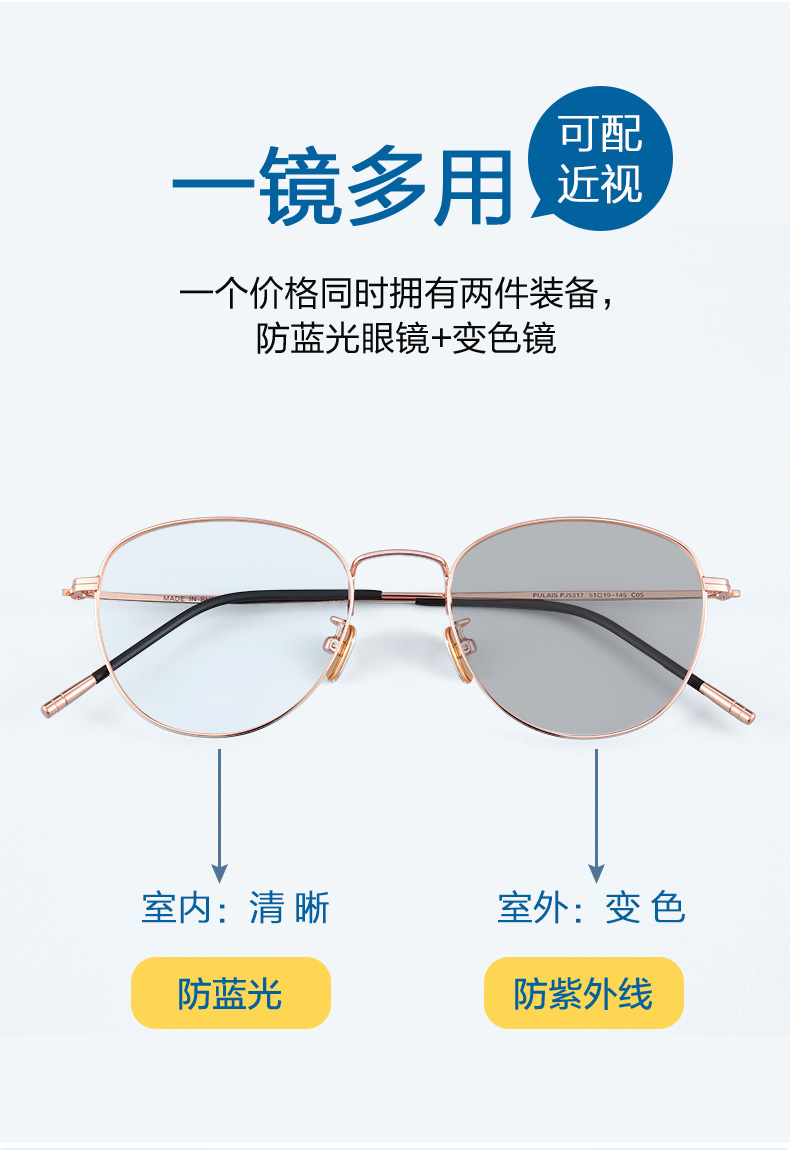 普莱斯PT11085 纯钛 宽边设计 高度数可用 中性