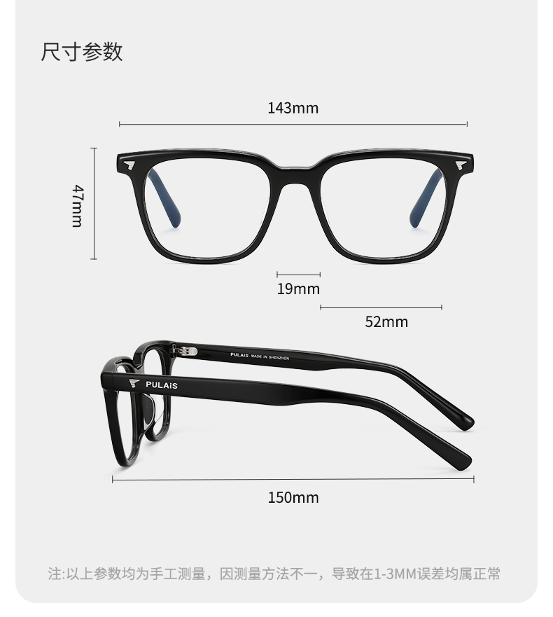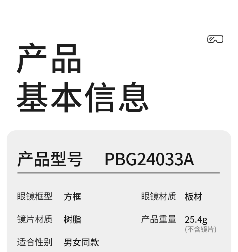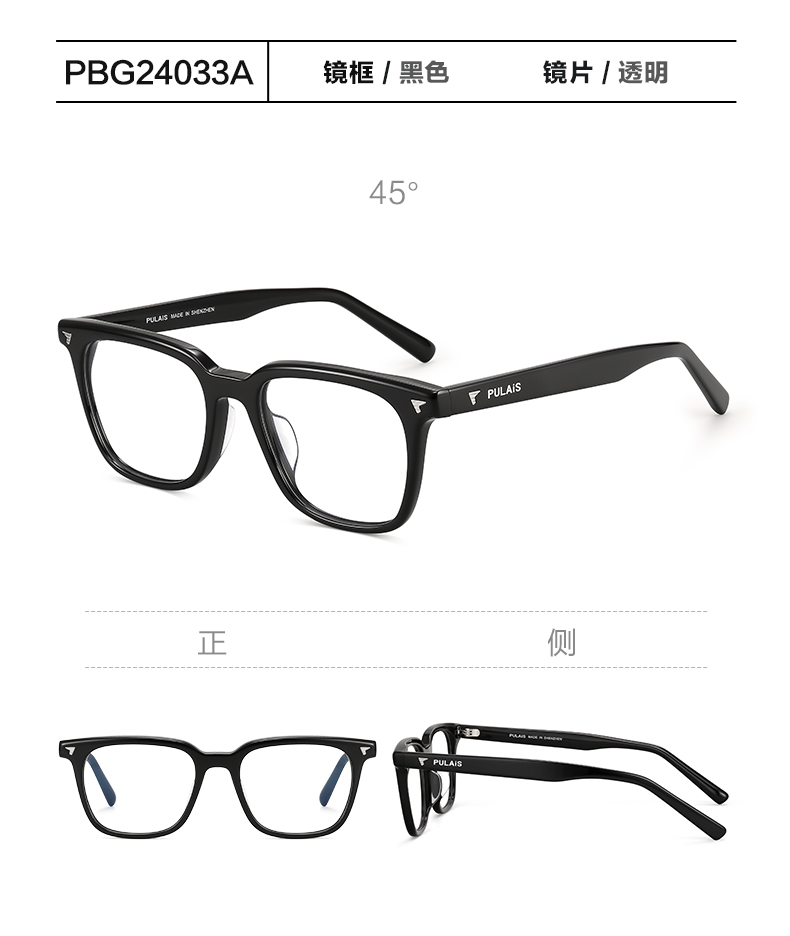 普莱斯光学镜框PBG24033A 潮搭黑框实力上镜 光泽板材舒适翻倍 男女同款 三色可选