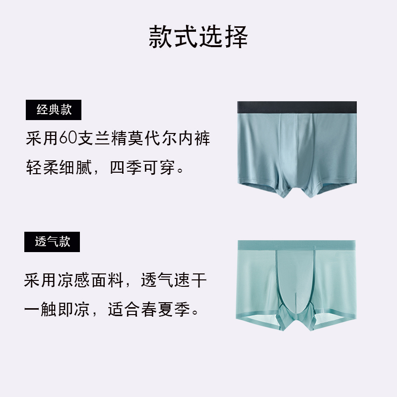 莫代尔男士内裤 60支兰精莫代尔精品内裤- 加大码7A抑菌面膜裤 运动抗菌平角短裤四角裤