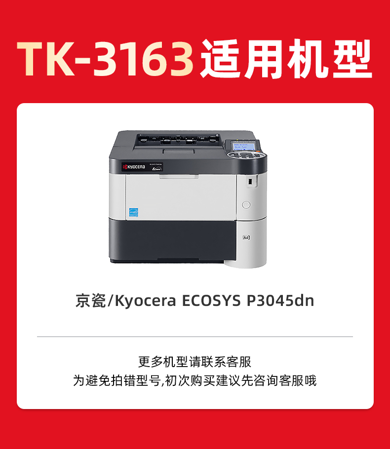 绘威TK-3163粉盒 适用京瓷Kyocera ECOSYS P3045dn复印机墨粉盒 墨盒 碳粉