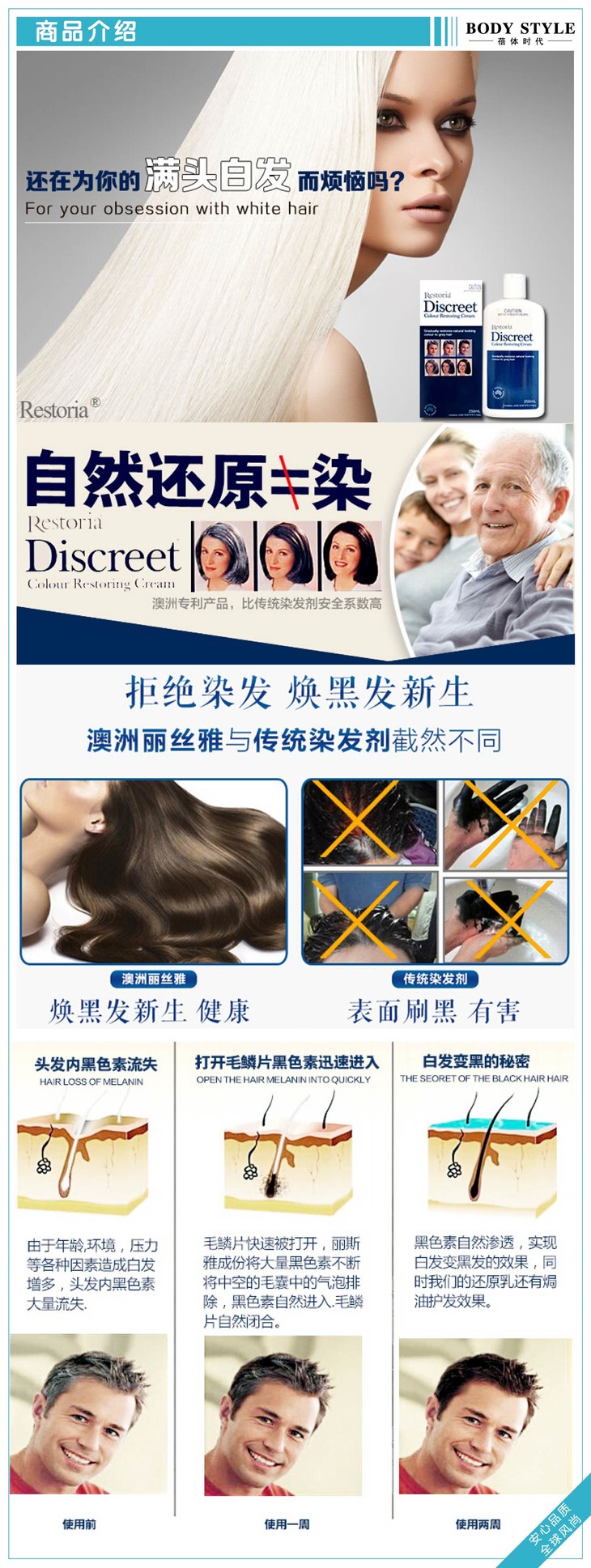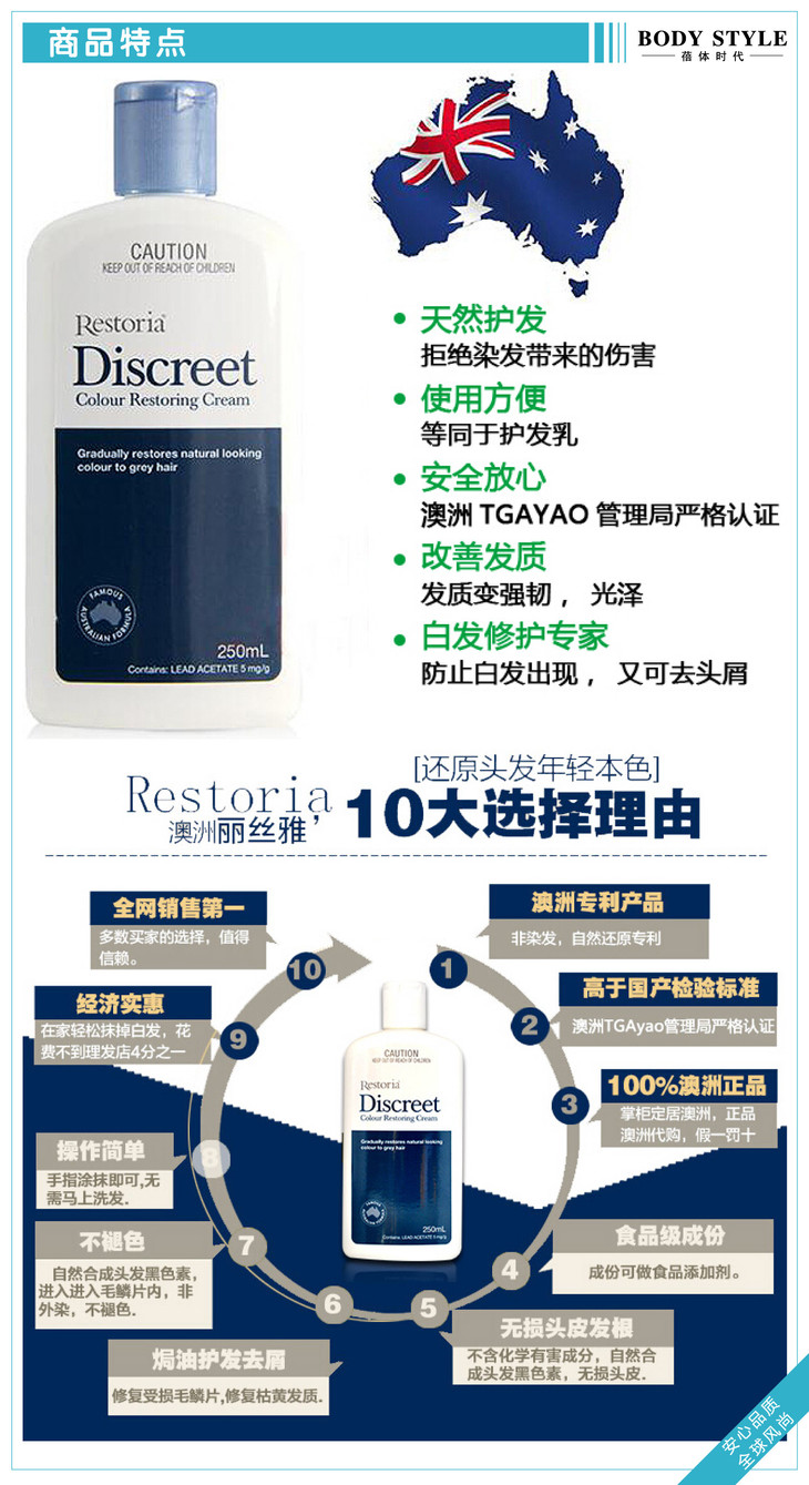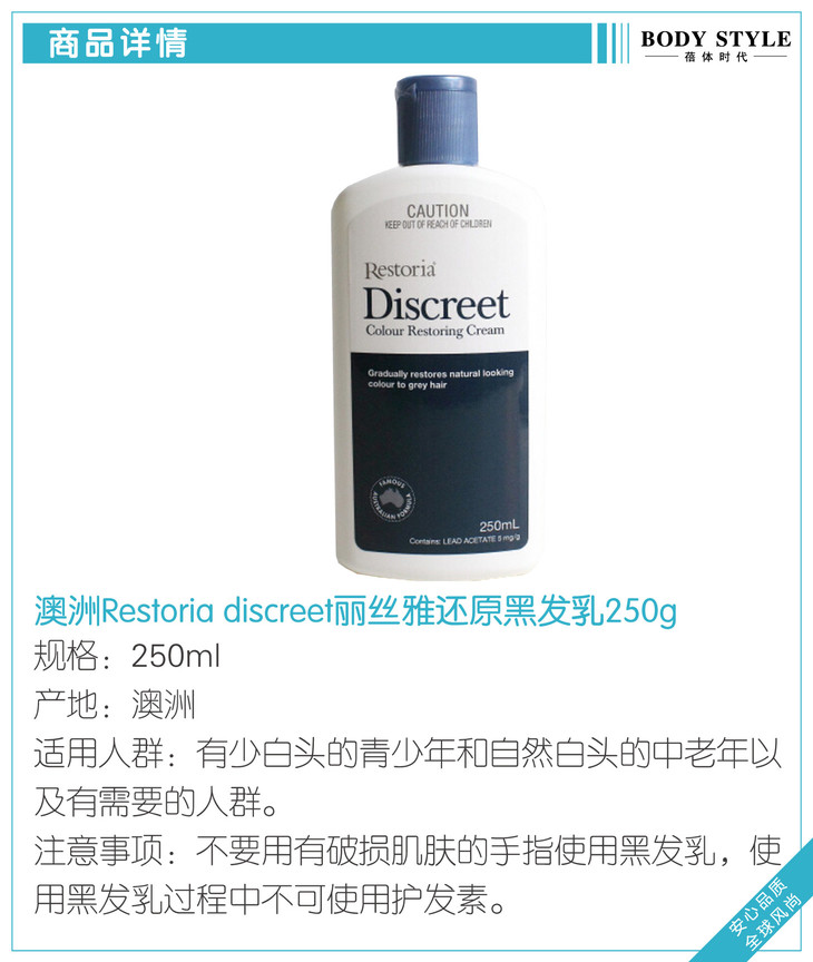 【第二件半价】澳洲Restoria discreet丽丝雅还原黑发乳250g