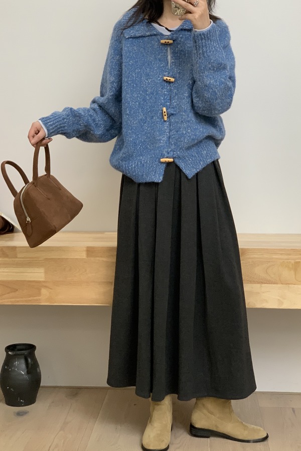 LNNNS 蓝色休闲牛角扣针织毛衫外套 21546