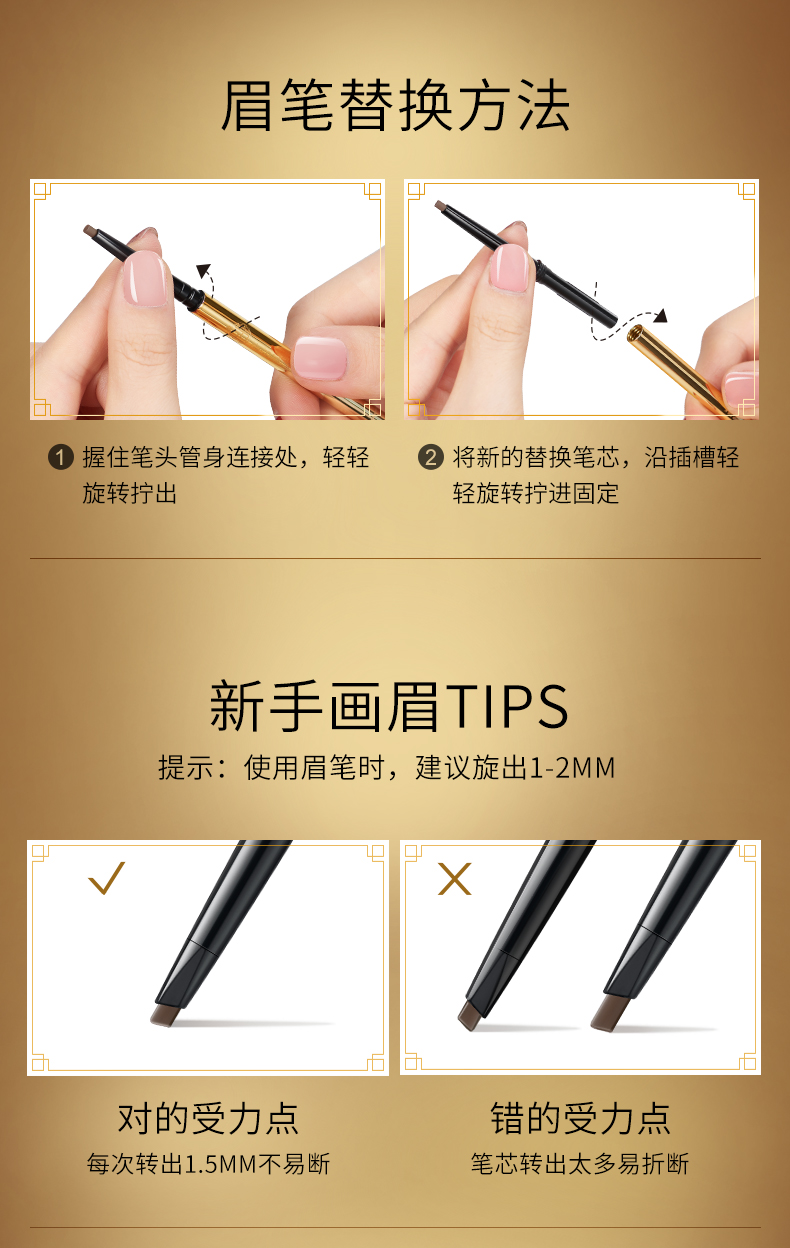 正宫御品锦锂连娟精雕眉笔(替换装)