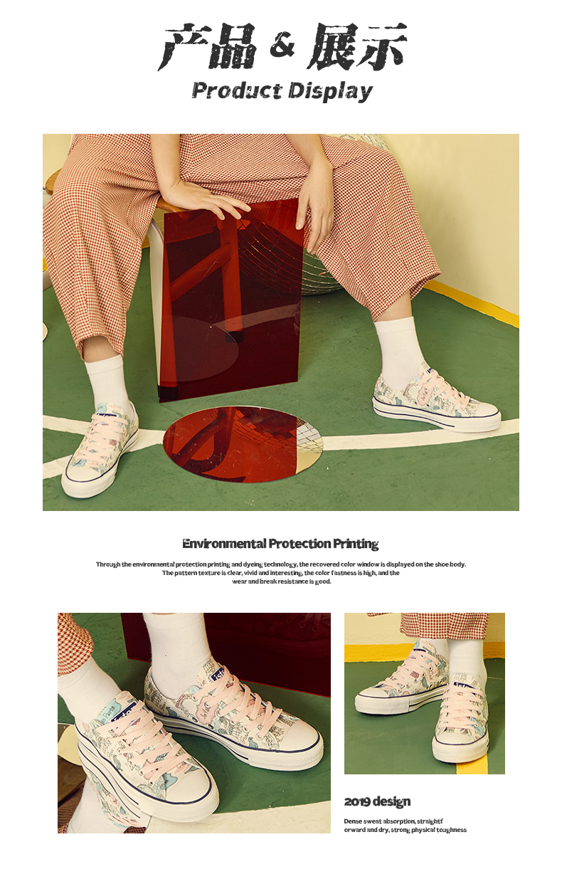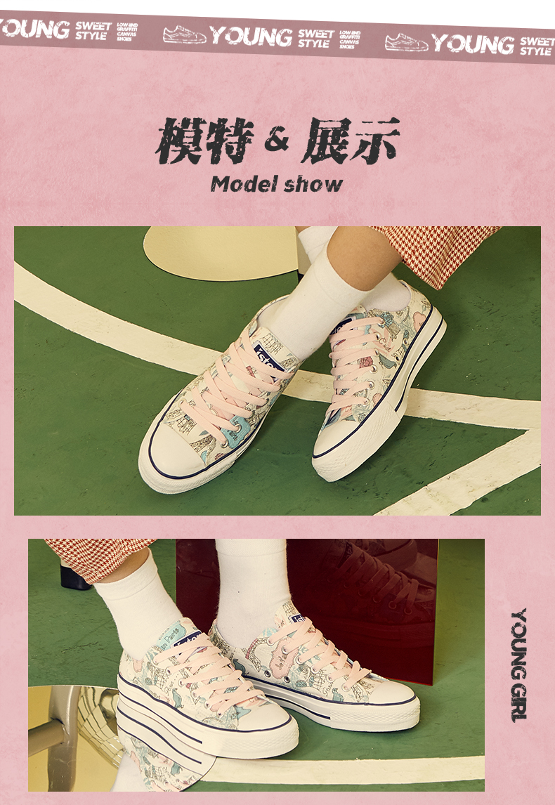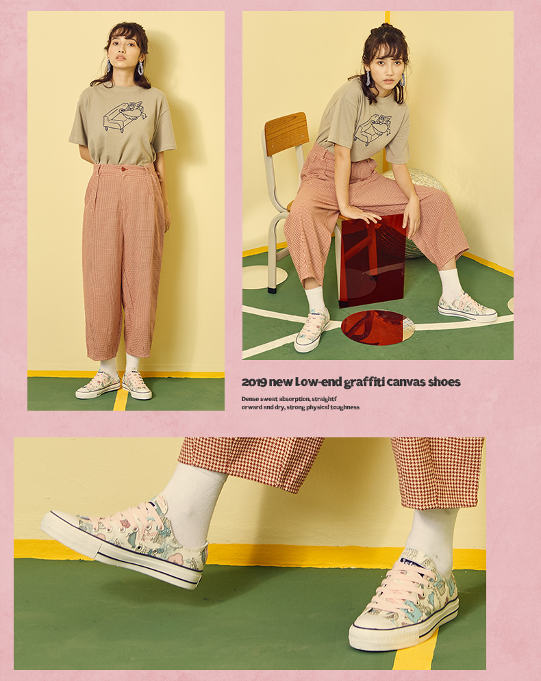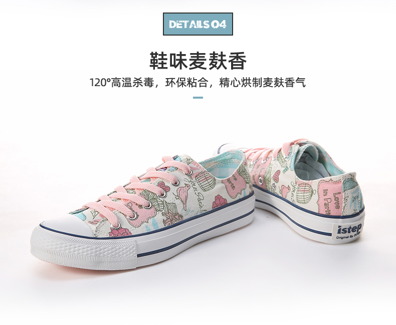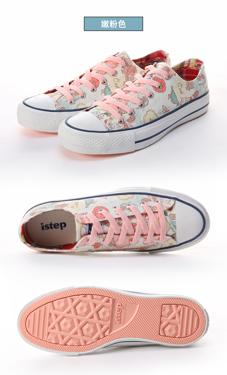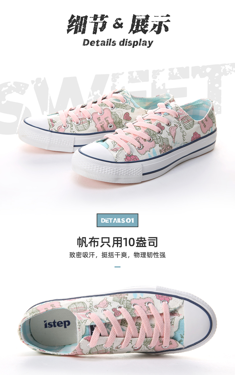 iSTEP手绘帆布鞋女低帮ins风百搭韩版新款涂鸦潮流板鞋女分销
