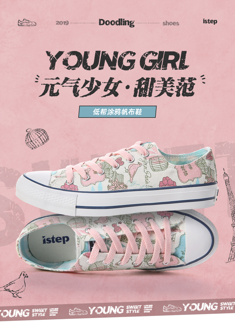 【2026新春专享】iSTEP可爱涂鸦低帮板鞋(瑕疵品不退不换)