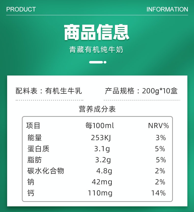 青藏有机纯牛奶(10支/箱*2箱) 商品图8