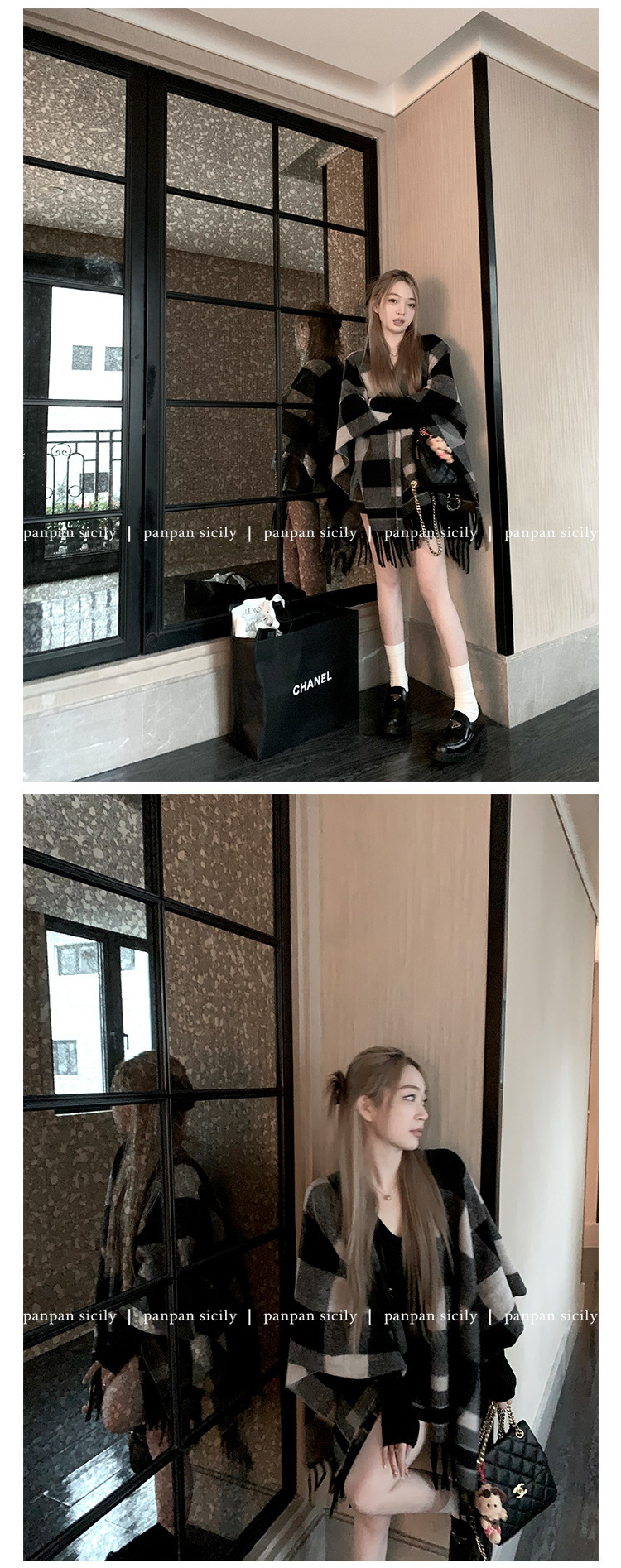 这款做了两个颜色(咖啡格和黑灰格,黑灰格比较英伦~