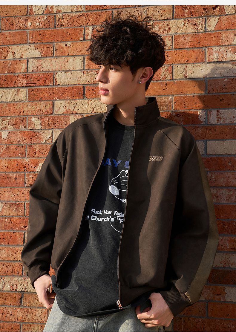 有志者UZIS美式潮流运动外套男秋季复古宽松户外防水皮衣夹克掣动