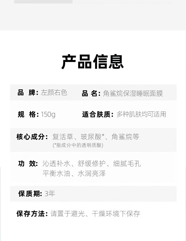 左颜右色 角鲨烷保湿睡眠面膜 150g